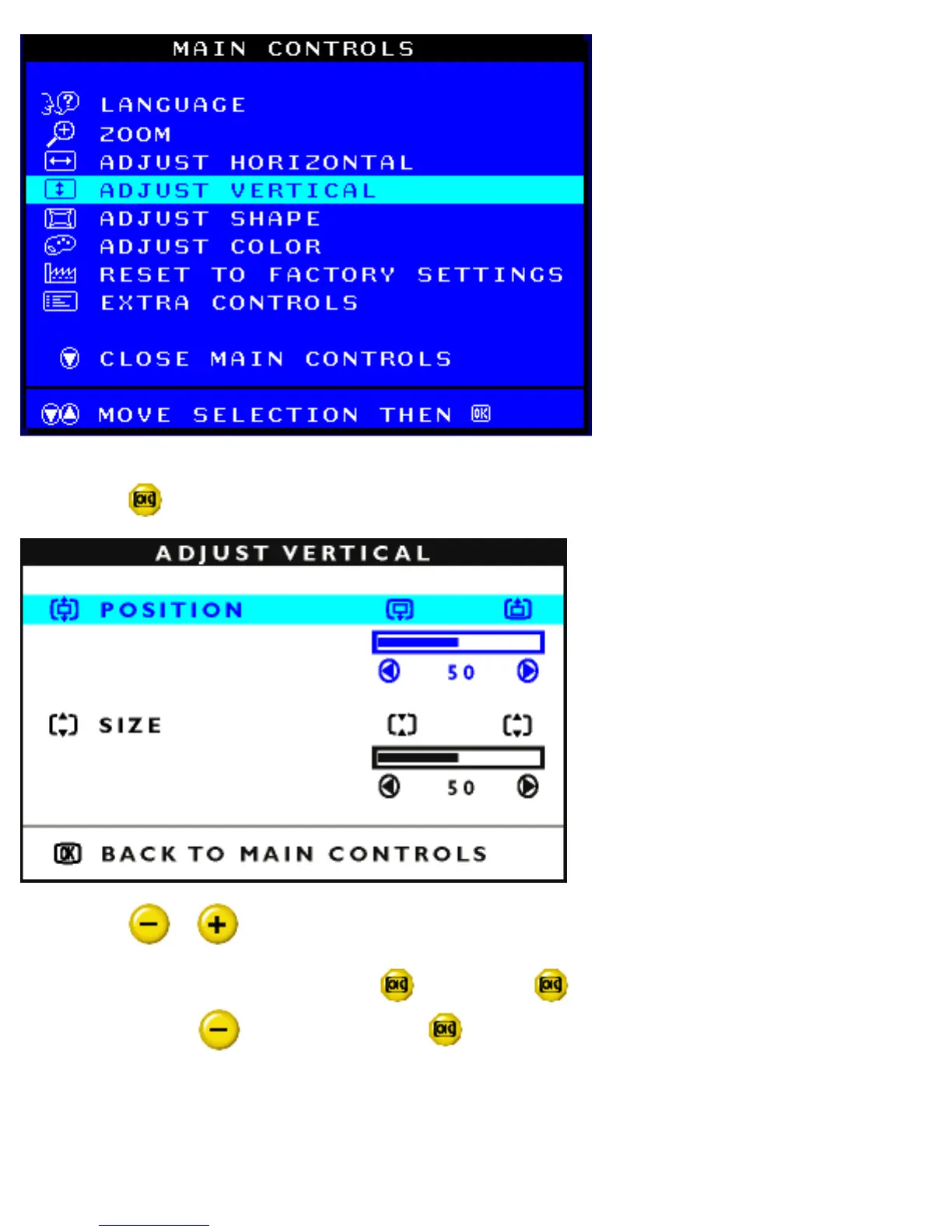 3) Press the button. The ADJUST VERTICAL window appears. POSITION should be highlighted.