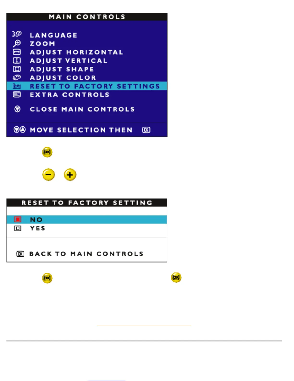 or button to select YES or NO. NO is the default. YES returns all settings to