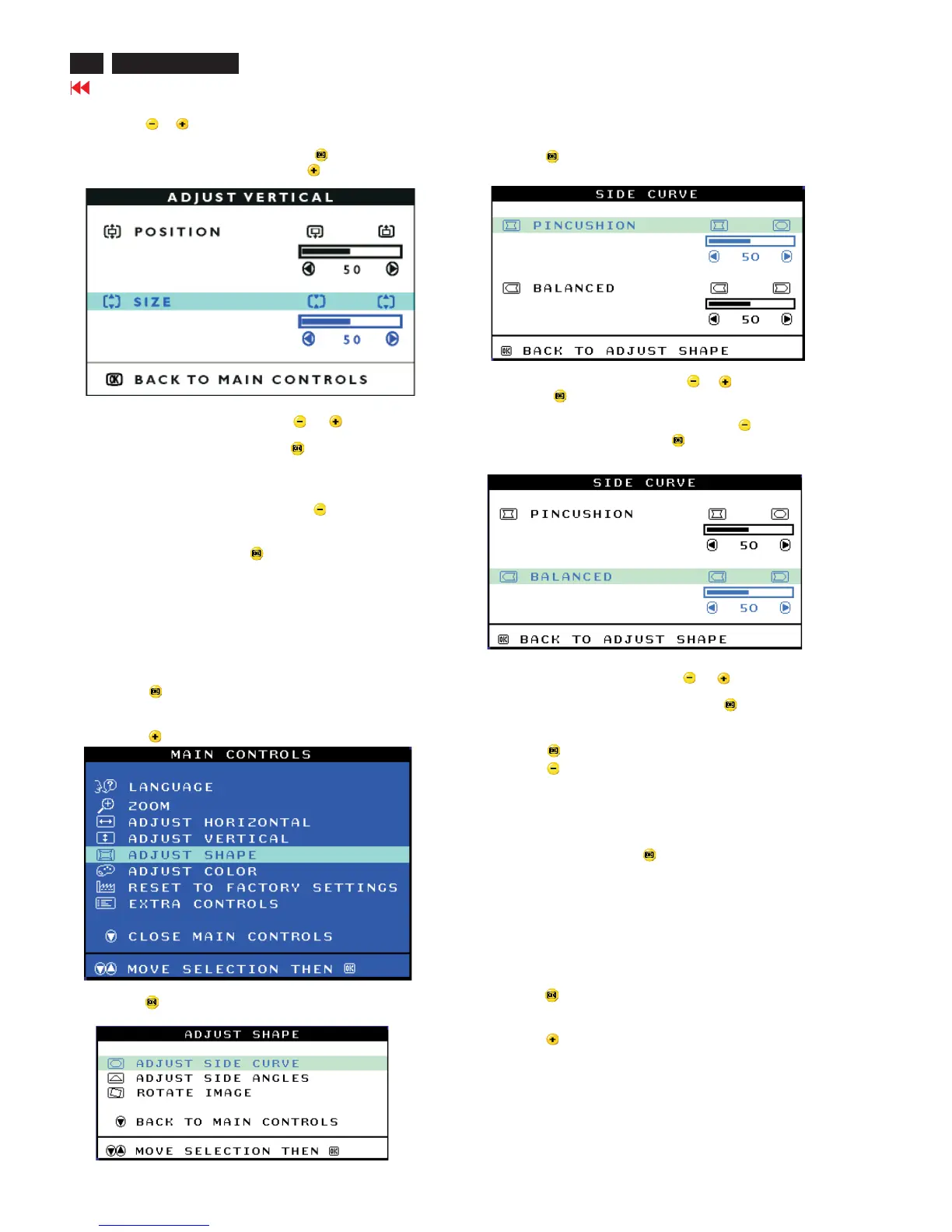... To continue to ADJUST SHAPE, press the button until ADJUST