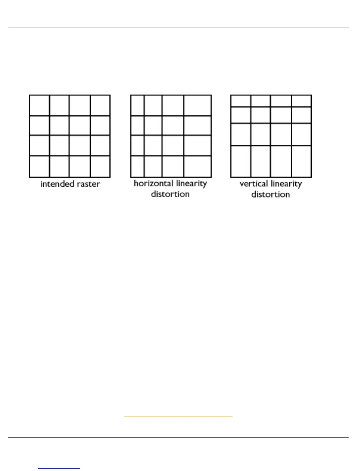 The degree to measure the actual location of a pixel on the screen corresponds with its intended location. (