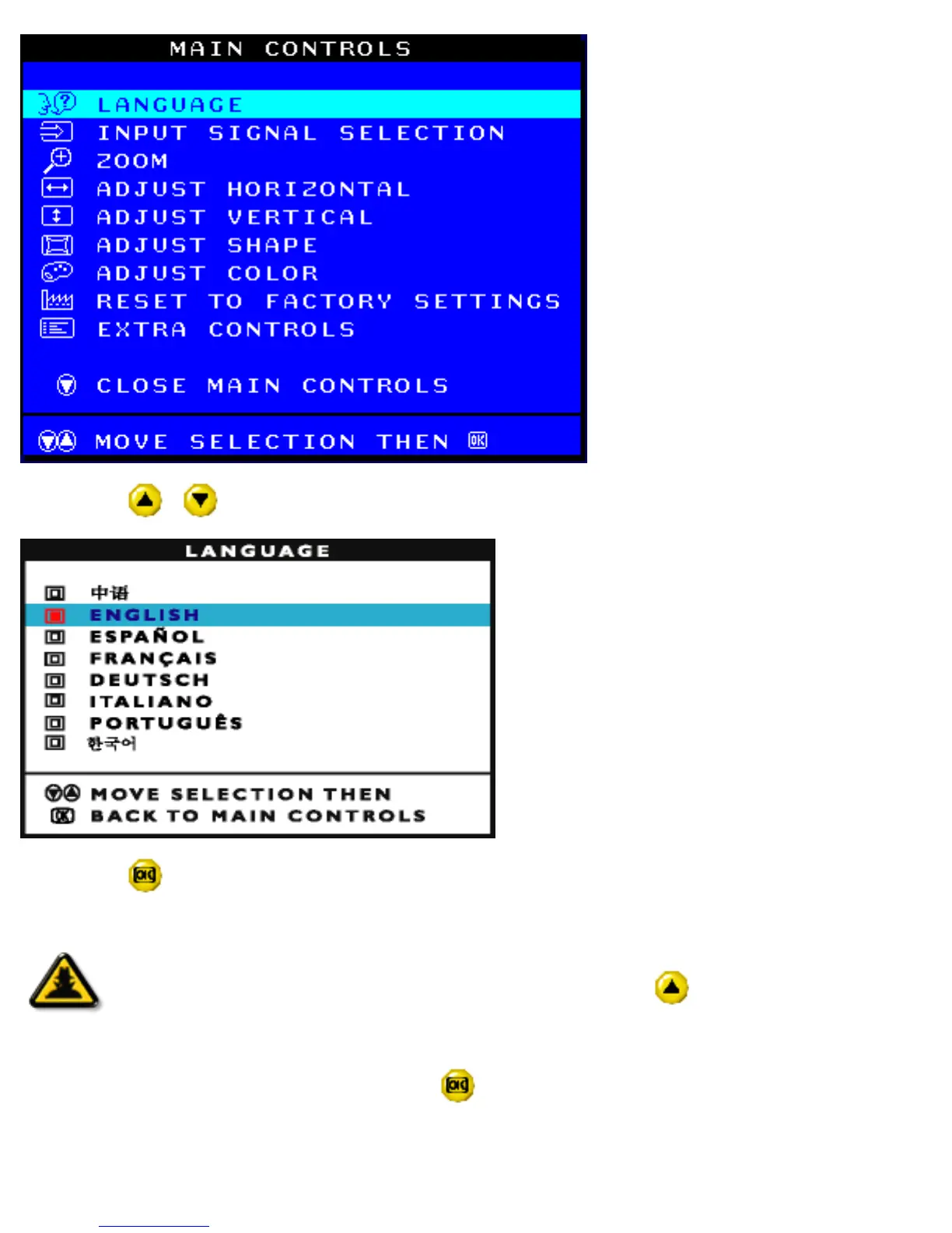 3) Press the or button until the desired language is highlighted.