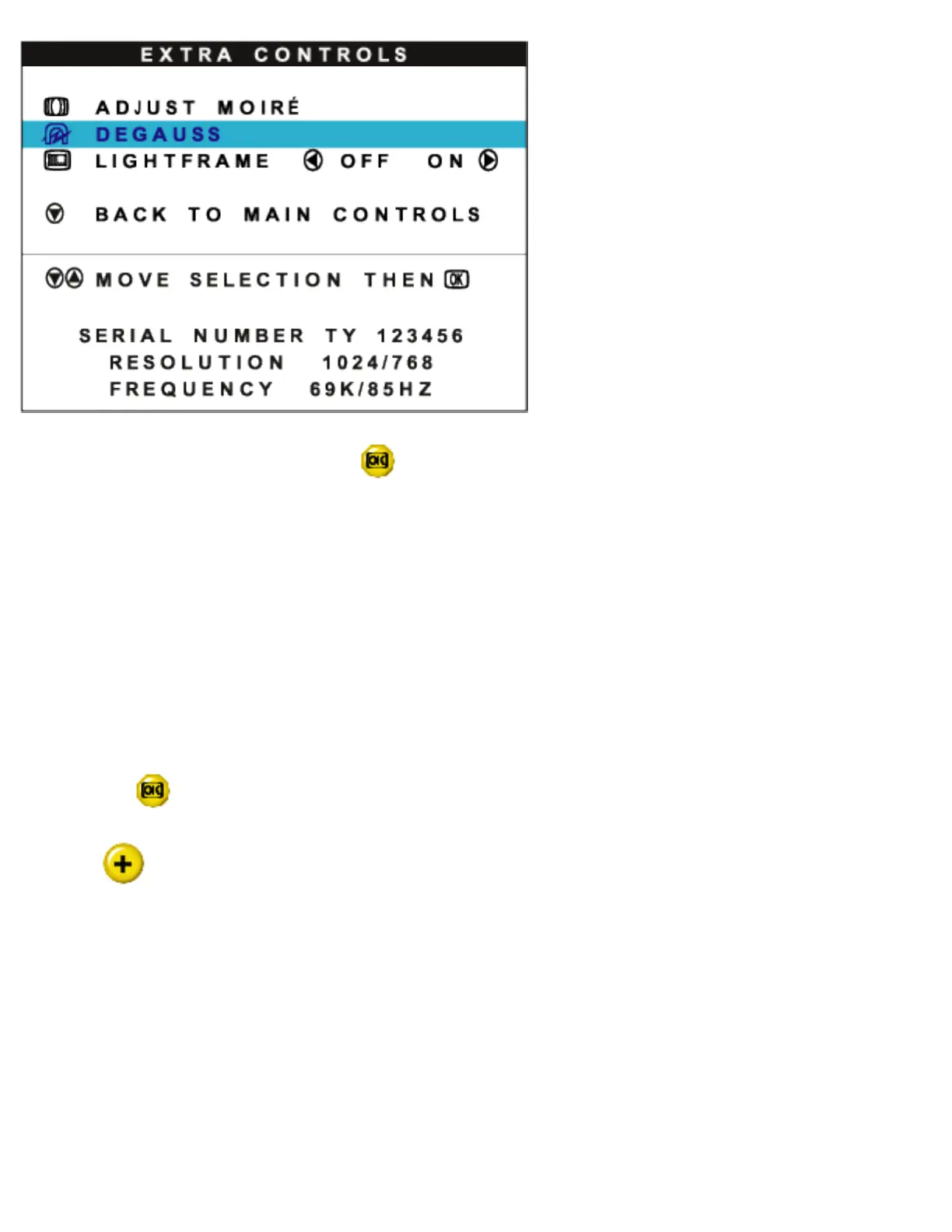 5) To degauss your screen, press the button. Your screen will be degaussed, then the MAIN