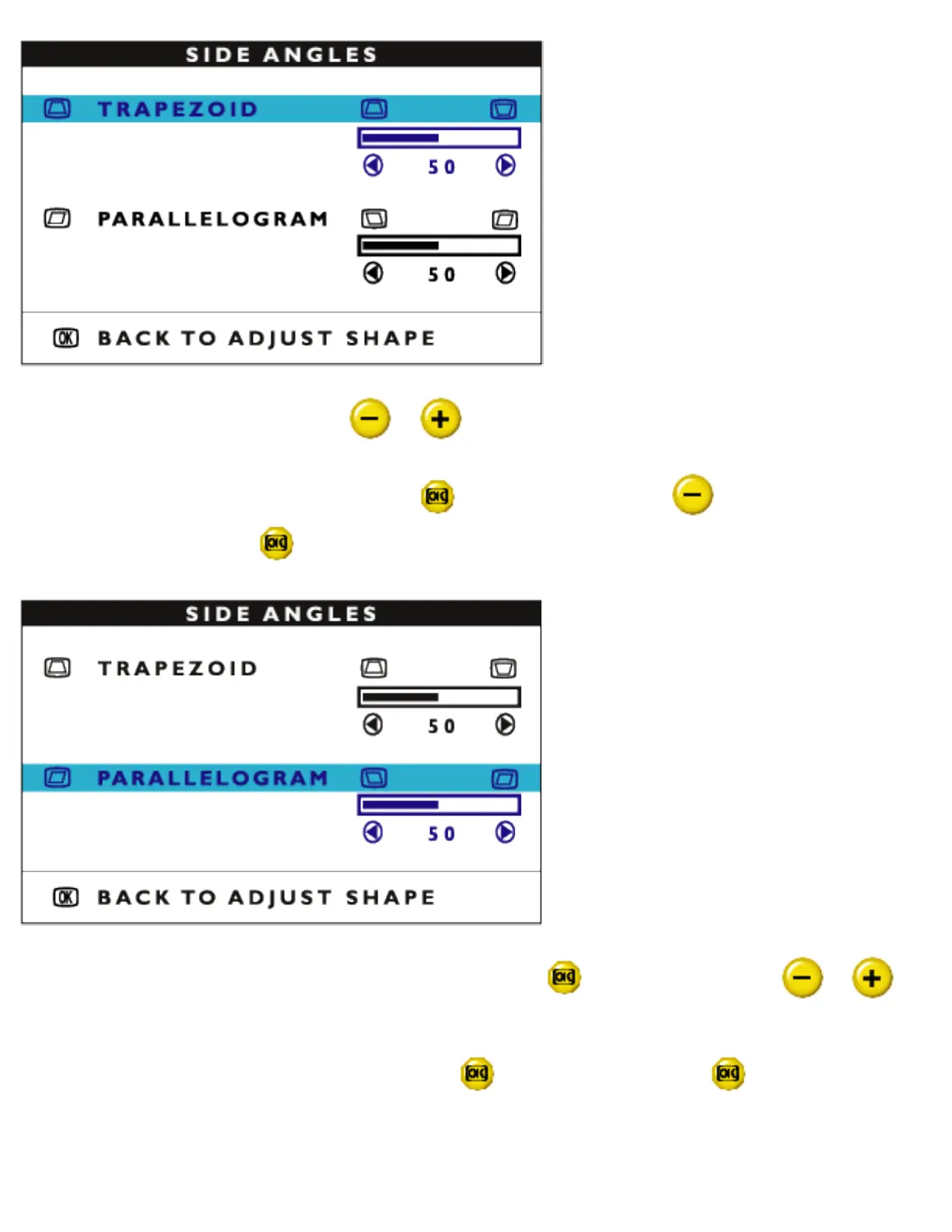6) To adjust the trapezoid, press the or button.