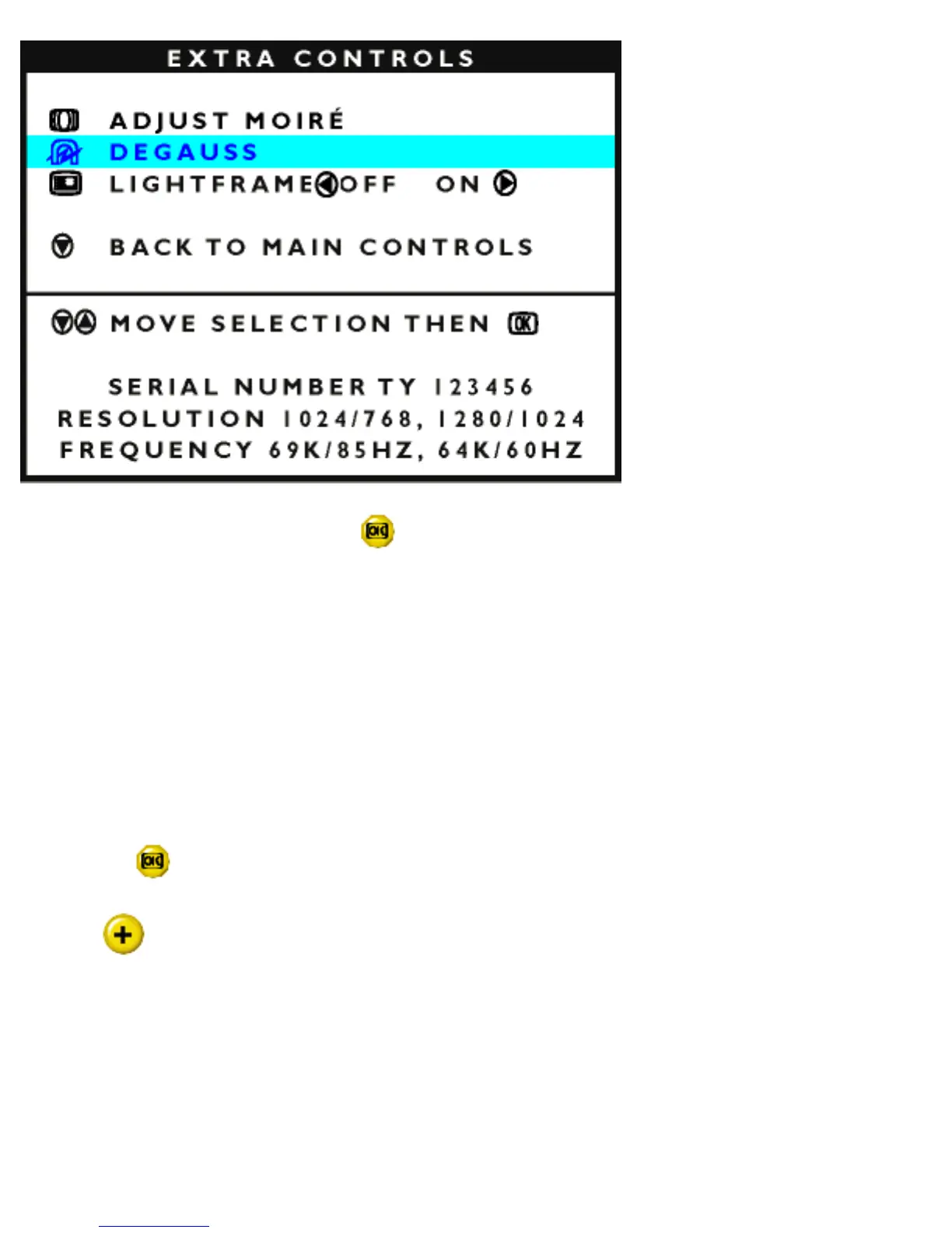 5) To degauss your screen, press the button. Your screen will be degaussed, then the MAIN