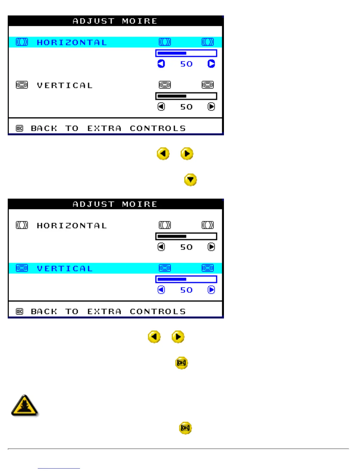 5) To adjust the horizontal moire, press the or button.