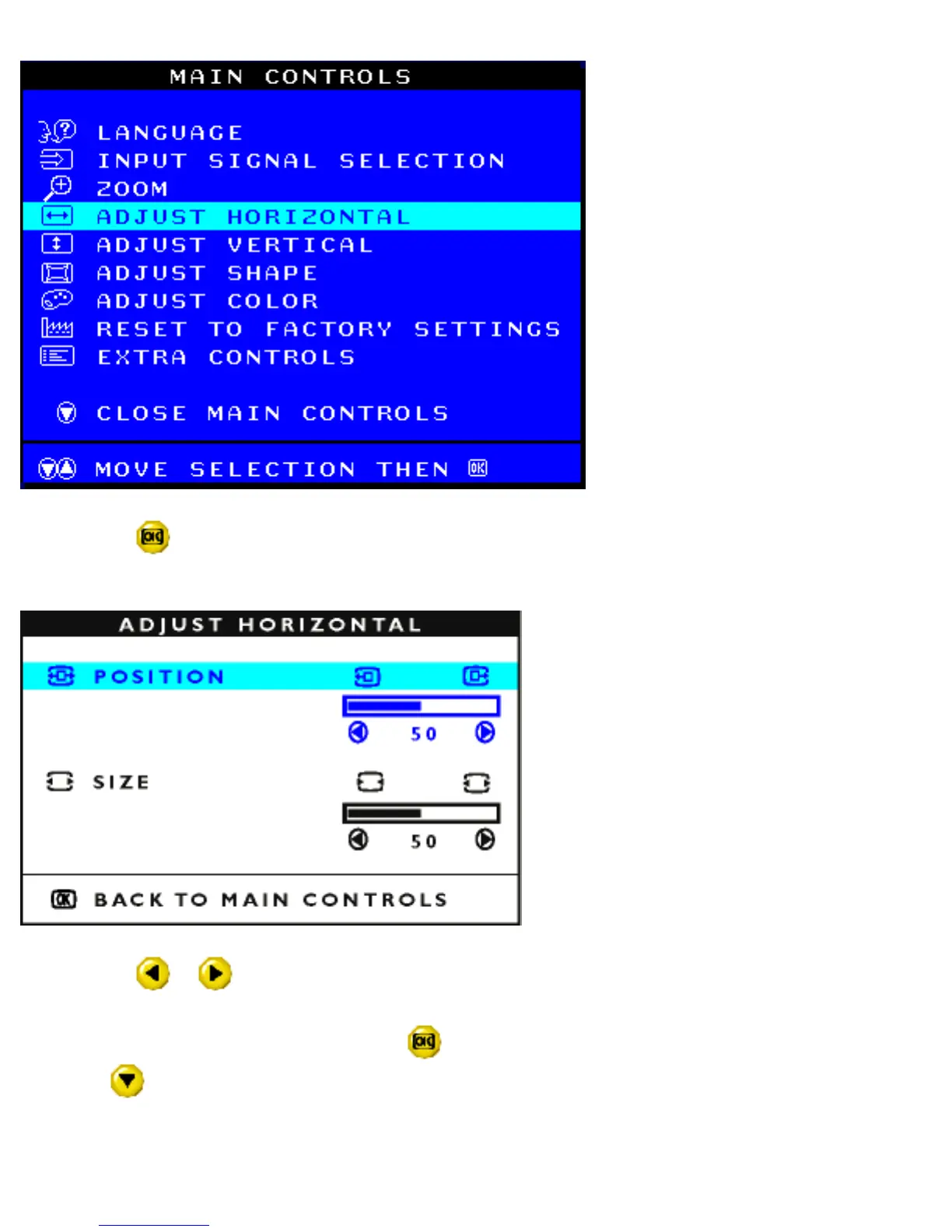 3) Press the button. The ADJUST HORIZONTAL window appears. POSITION should be