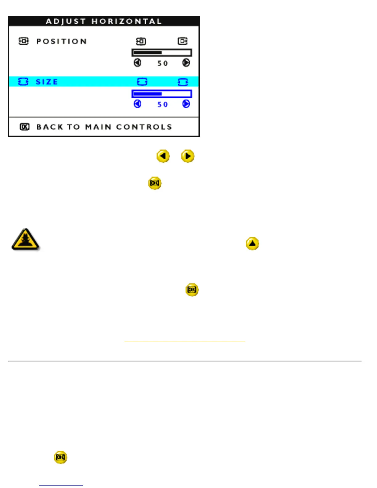 6) To adjust the horizontal size, press the or button.
