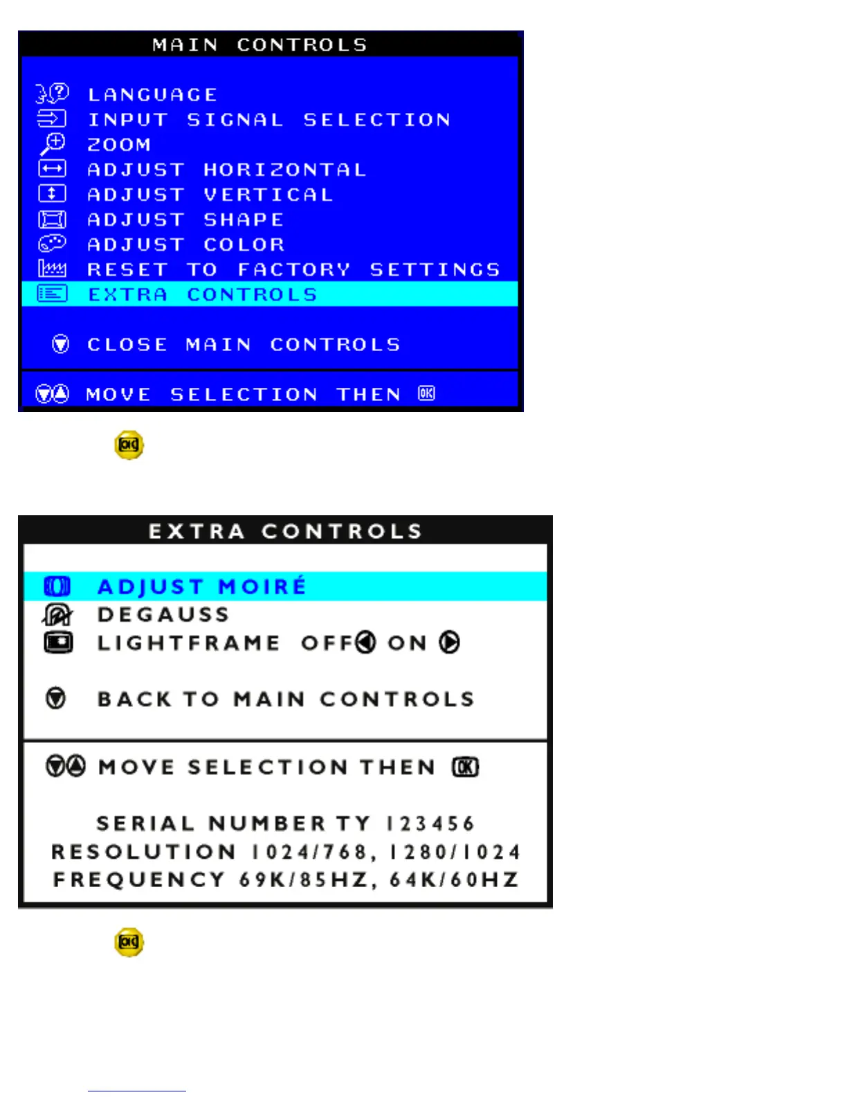 3) Press the button. The EXTRA CONTROLS window appears. ADJUST MOIRE will be highlighted.