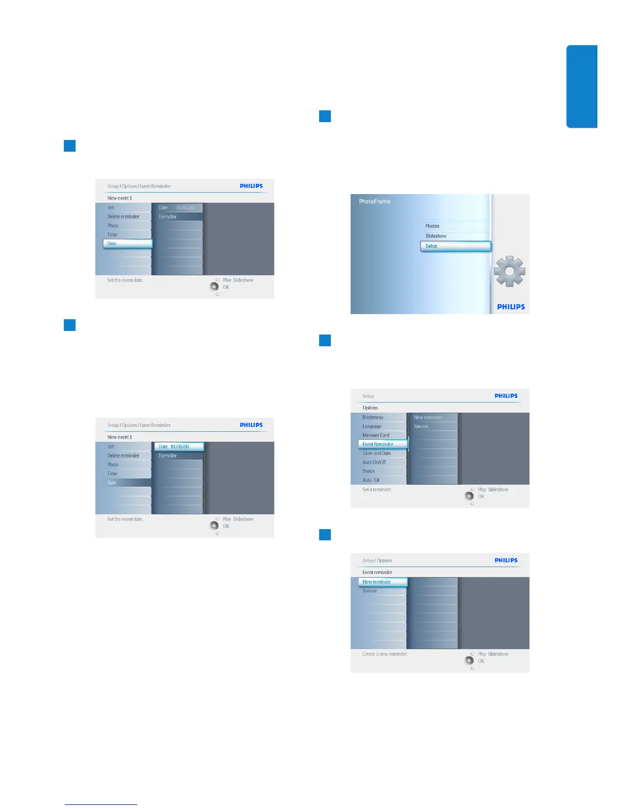 • Navigate down to event reminder.