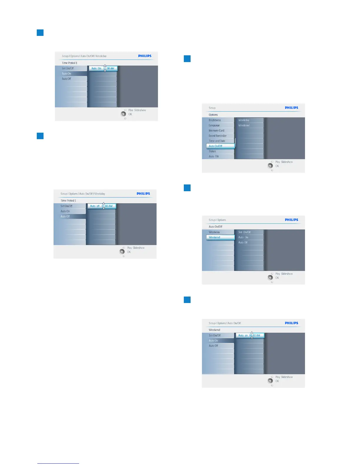 • Navigate down to select the Auto On/Off
