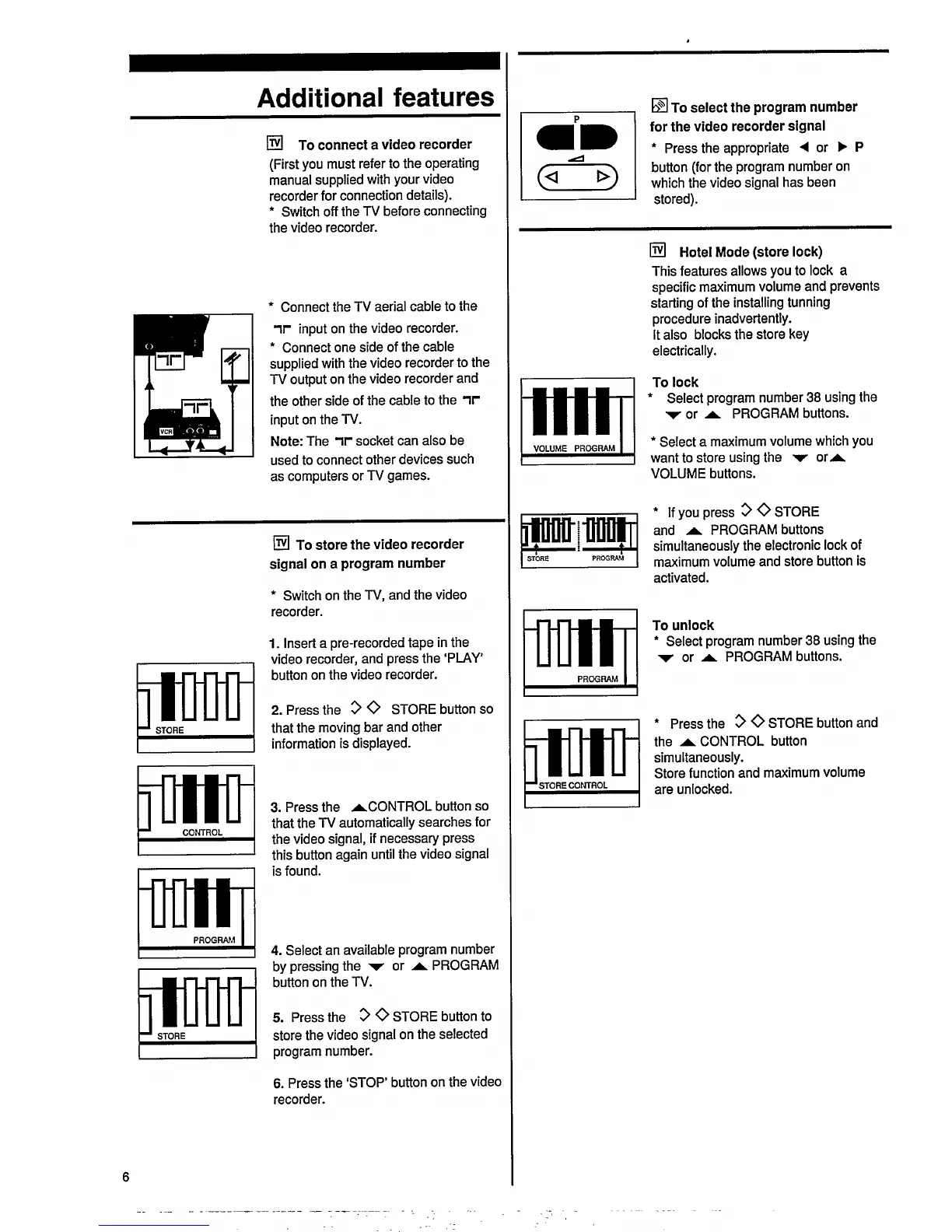 Philips 14GR1220 - Additional Features; Video Recorder Signal Selection; Connecting a Video Recorder; Hotel Mode (Store Lock)