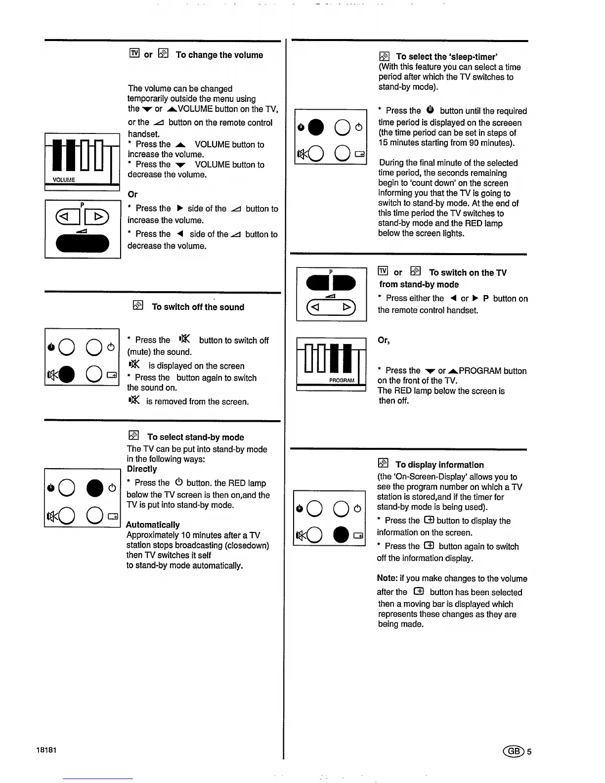 Philips 14GR1220 - Changing Volume; Muting the Sound; Selecting Stand-by Mode; Using the Sleep Timer