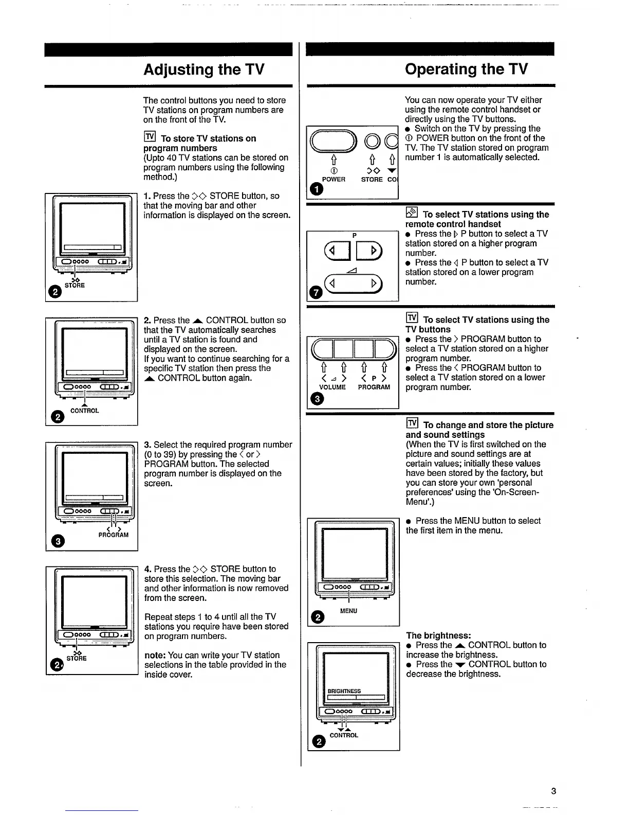 Philips 14GR1221 - Adjusting the TV; Store TV Stations; Select TV Stations via TV Buttons; Change and Store Picture;Sound Settings