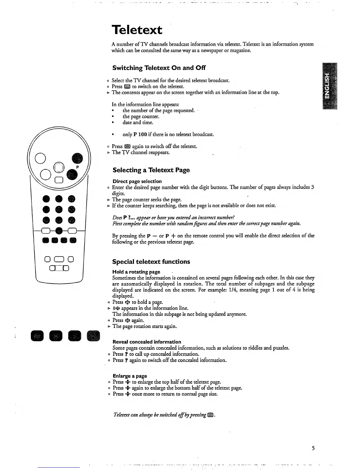Philips 14PT156B/01 - Teletext; Selecting a Teletext Page; Special Teletext Functions; Hold a Rotating Page