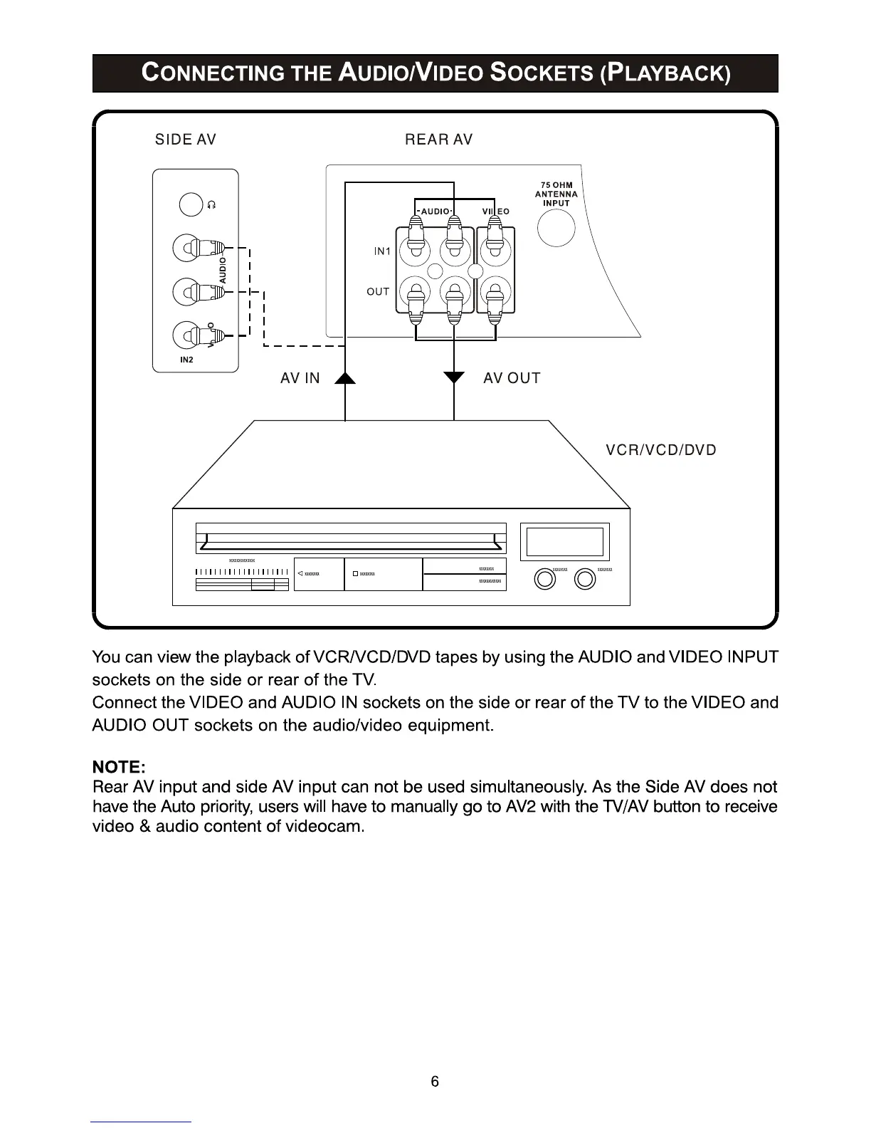 Philips 14PT2116/69 - Connecting the Audio;Video Sockets (Playback)