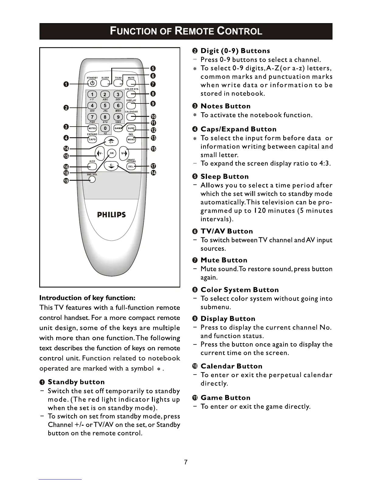 Philips 14PT2116/69 - Functions of Remote Control