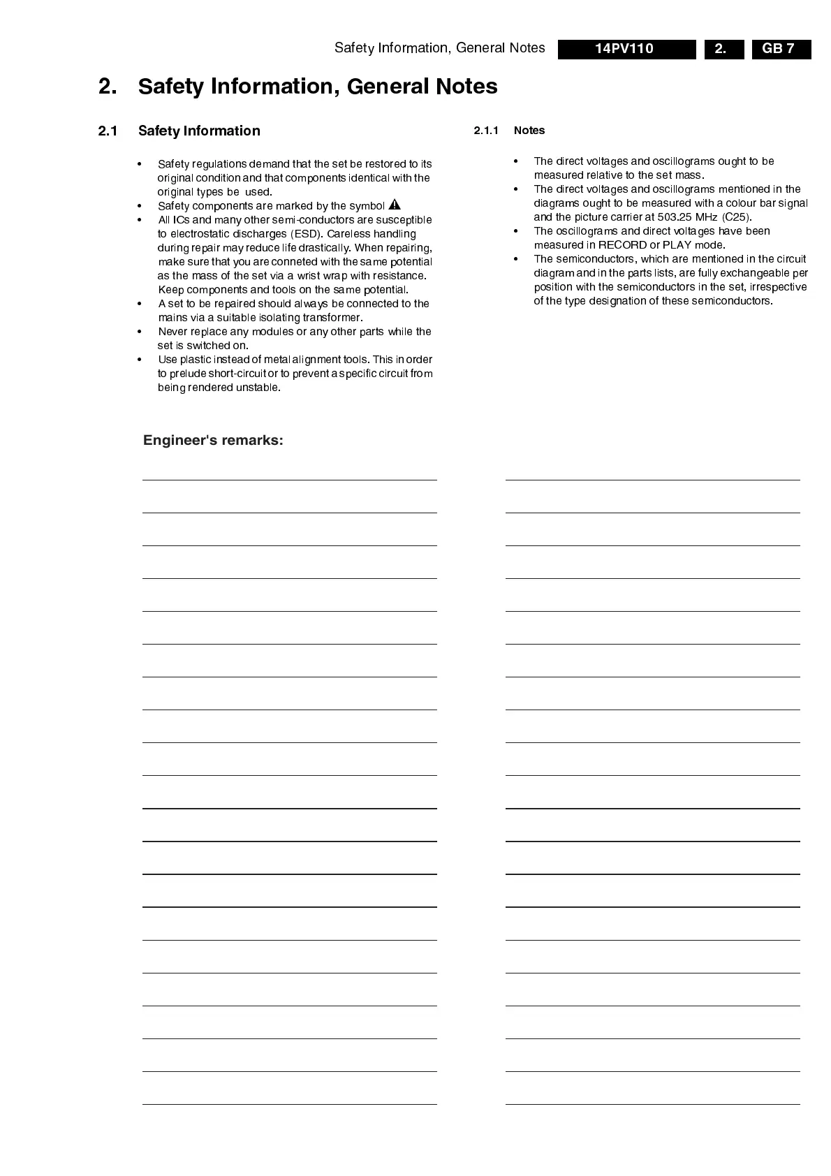 Engineer's remarks:
