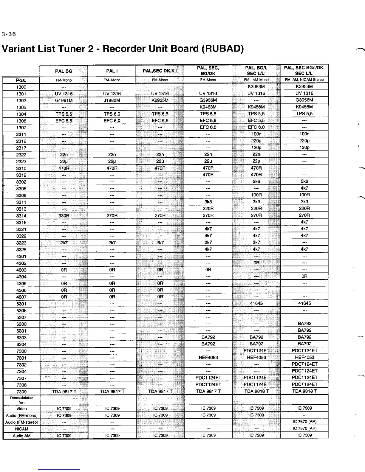 Philips 14PV210 - Variant List Tuner 2 - Recorder Unit Board (RUBAD)