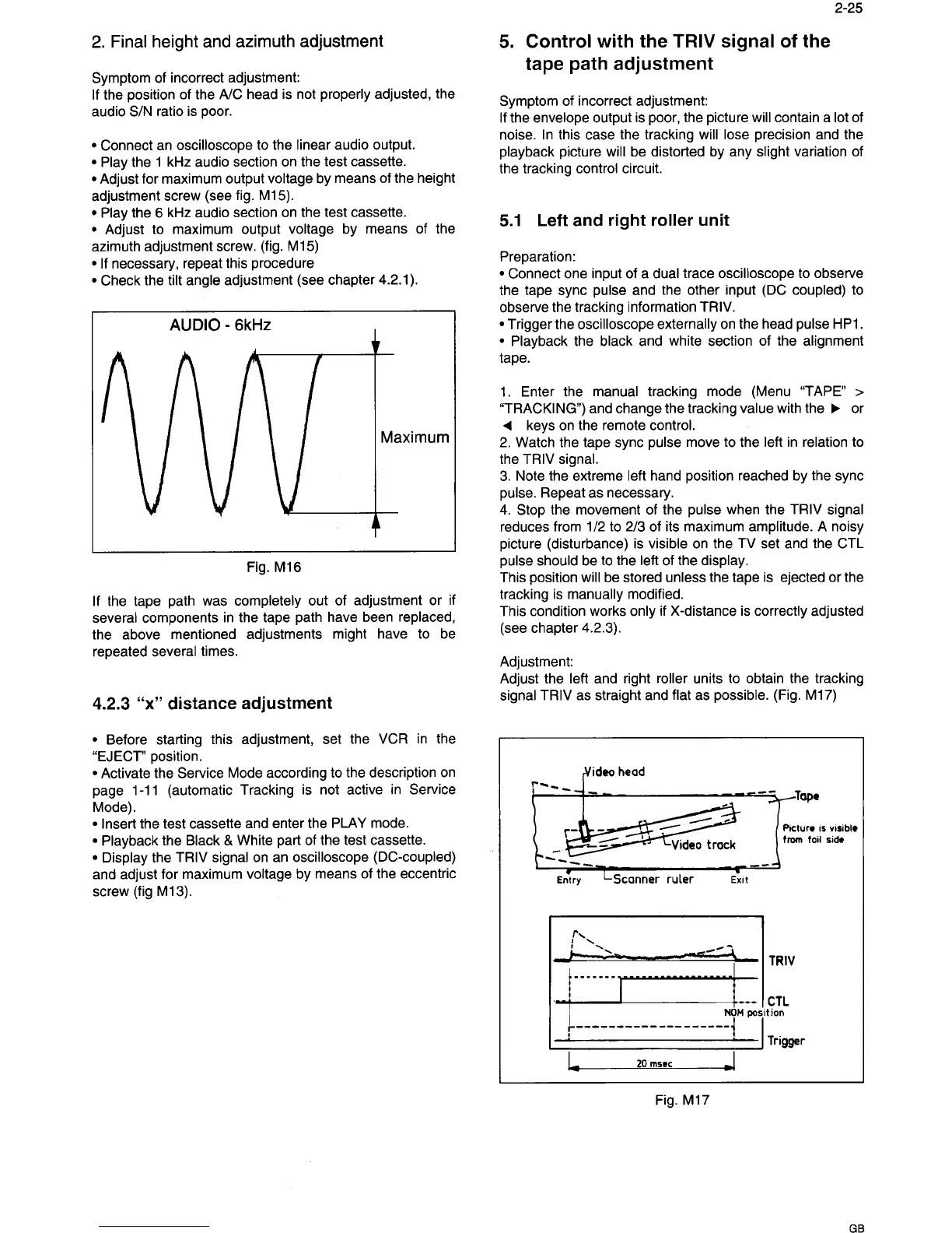 Philips 14PV210 - Control with the TRIV Signal of the Tape Path Adjustment; X Distance Adjustment; Left and Right Roller Unit