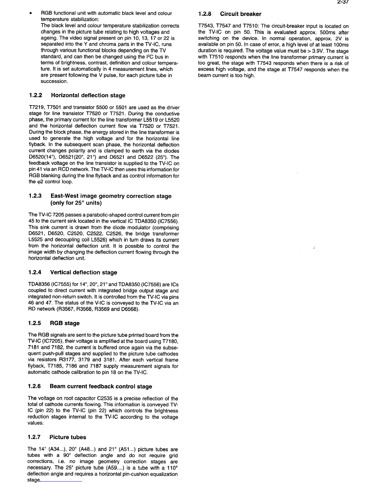 Philips 14PV210 - Horizontal Deflection Stage; East-West Image Geometry Correction Stage; Vertical Deflection Stage; Circuit Breaker