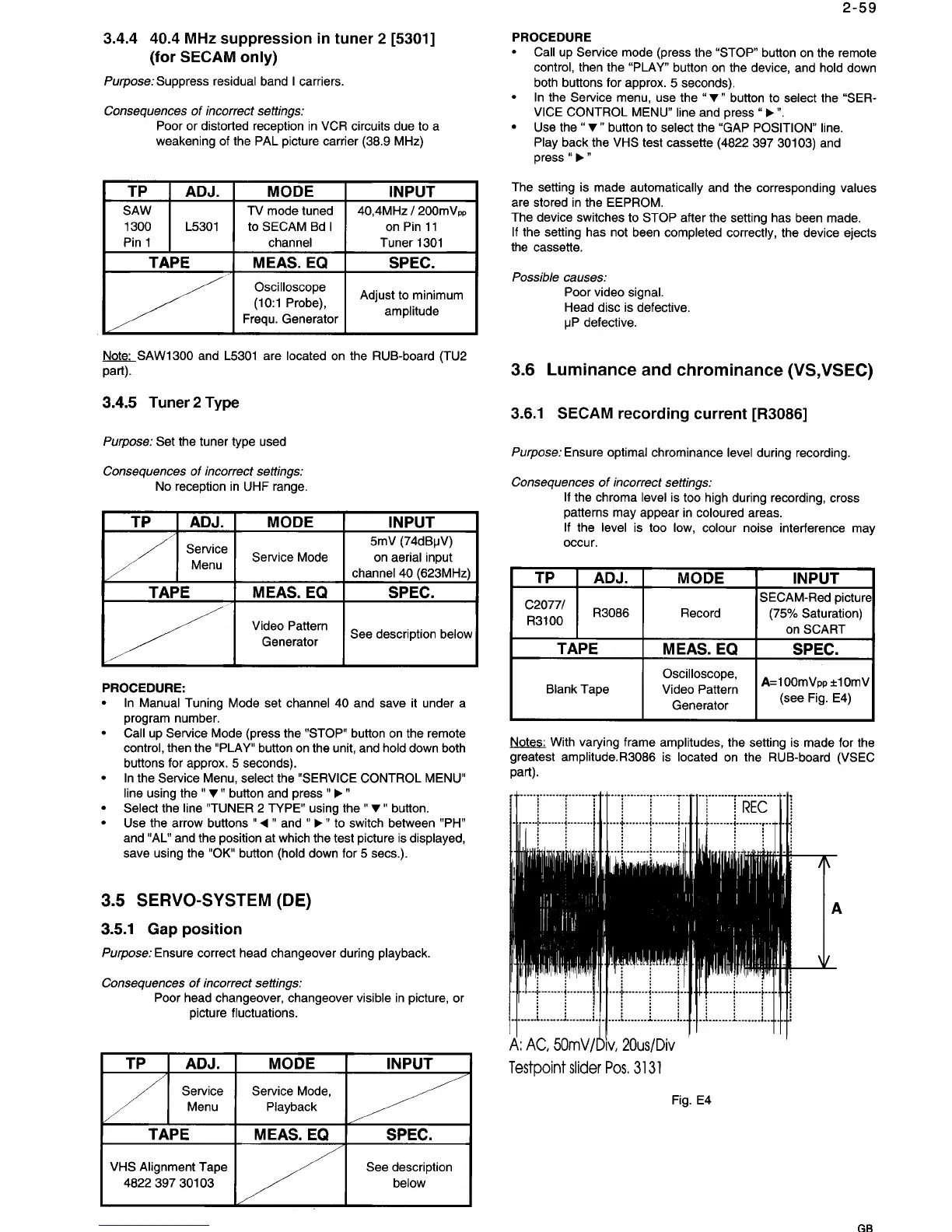Philips 14PV210 - Servo-System (DE); Luminance and Chrominance (VS, VSEC); Gap Position; SECAM Recording Current