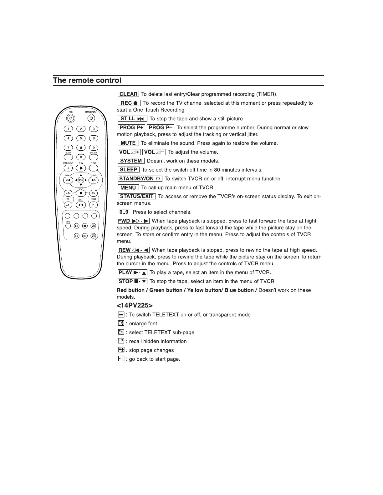 Philips 14PV225 - OPERATING CONTROLS AND FUNCTIONS; The Remote Control