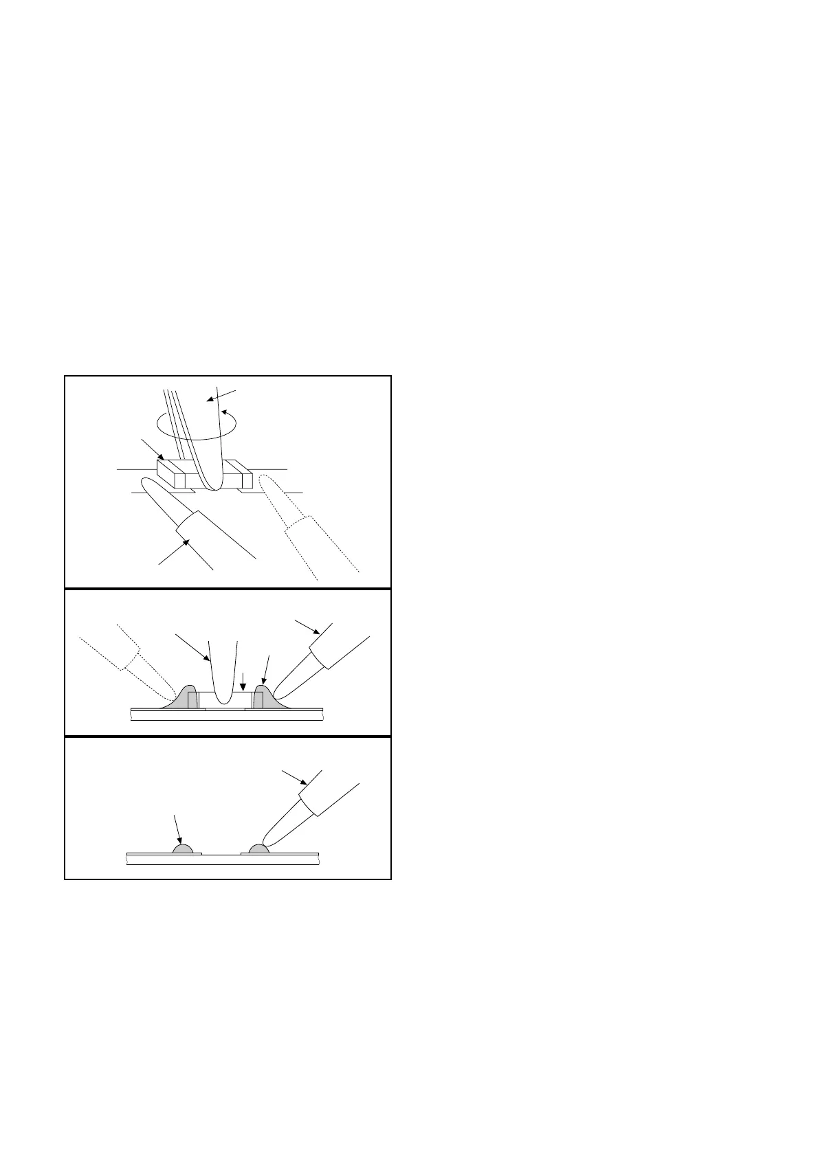b. Press the part downward with tweezers and solder