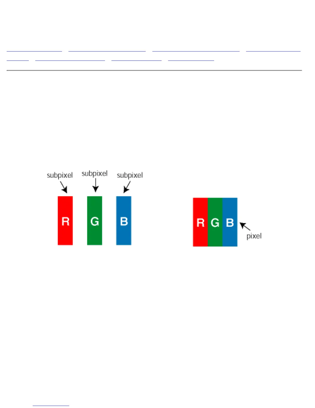 together appear as a single white pixel. When all are dark, the three colored subpixels together appear as a