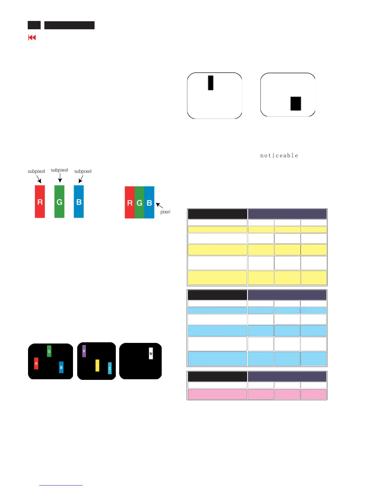 defects appear as pixels or sub pixels that are always lit or