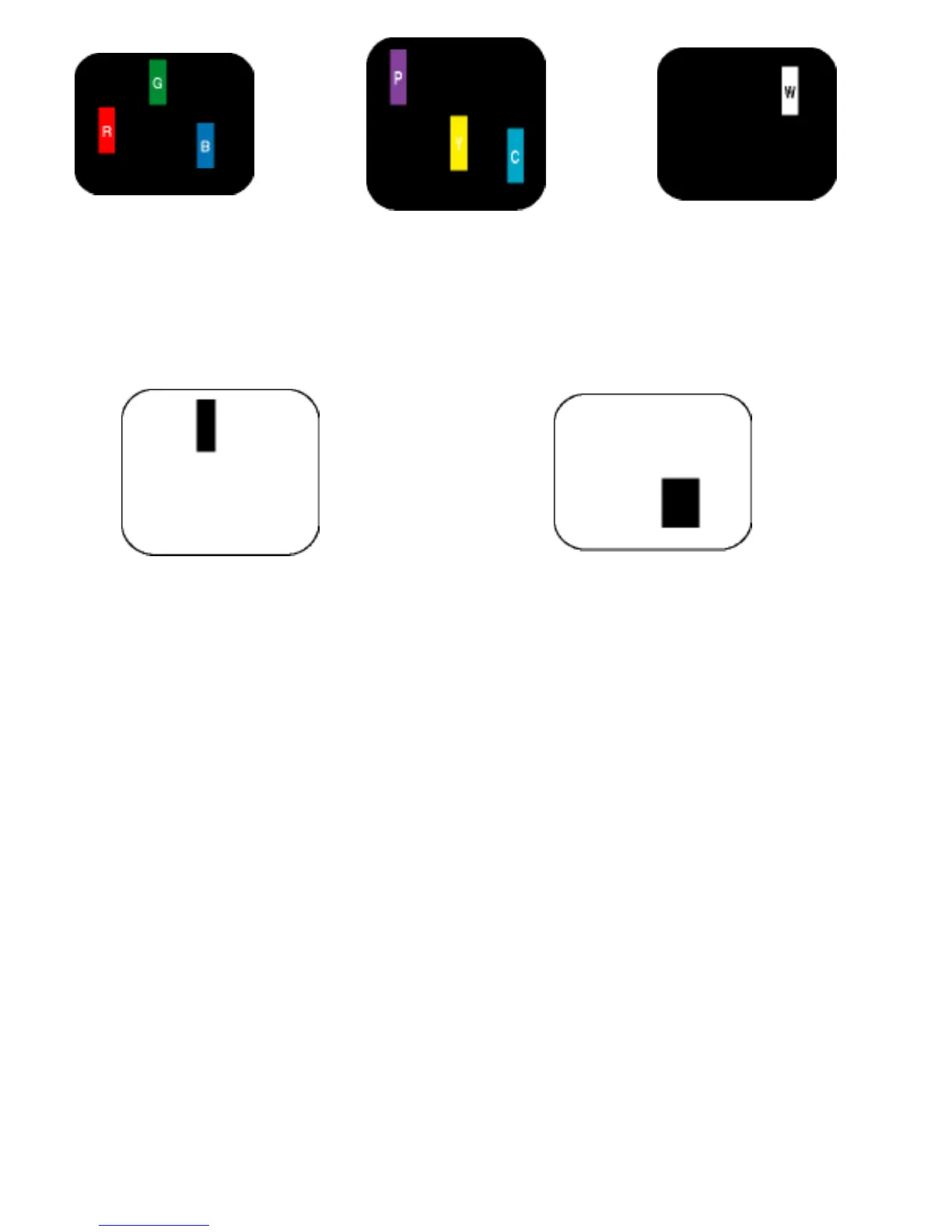 Black Dot Defects Black dot defects appear as pixels or subpixels that are always dark or "off". These are