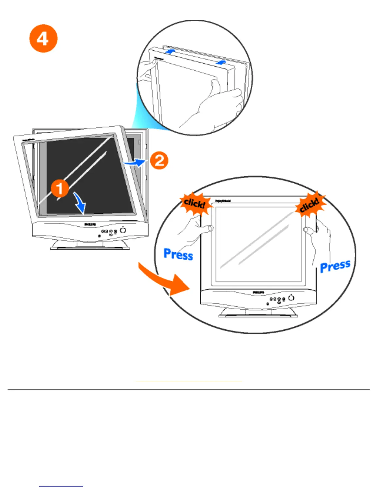 4) Clip the protective cover onto the monitor, engaging only the top two clips.