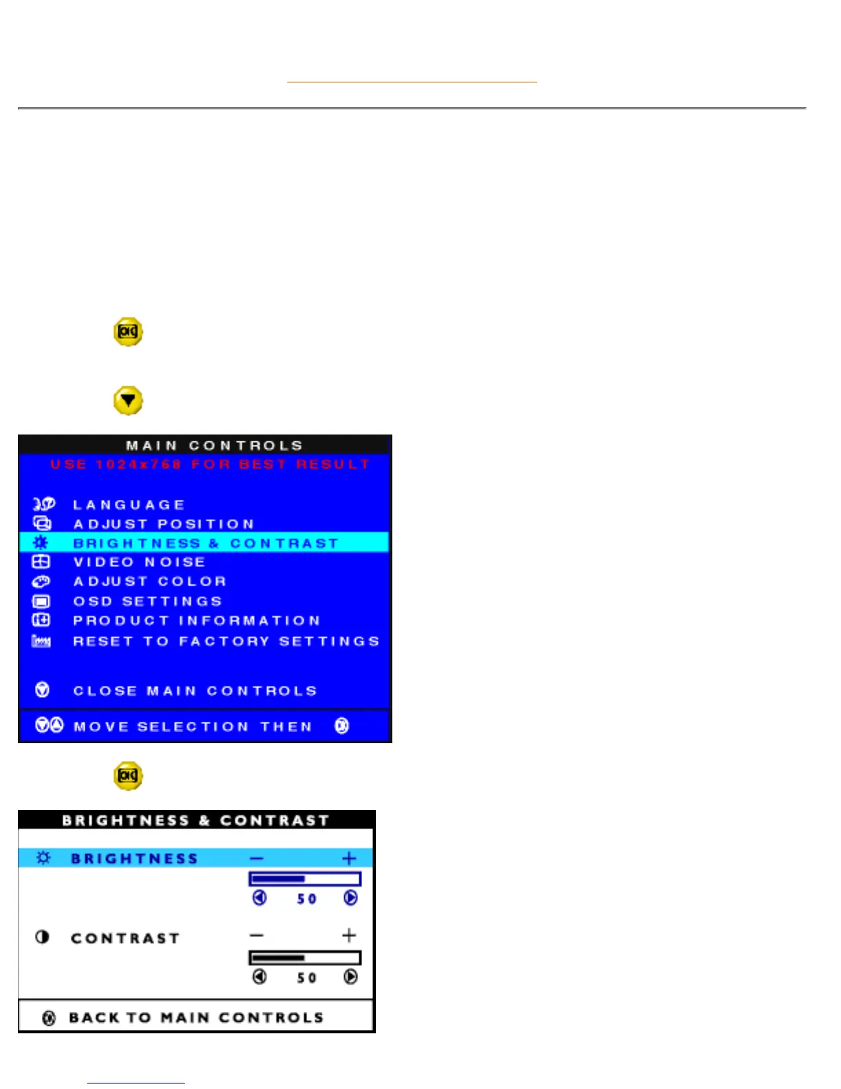 To adjust the Brightness and Contrast, follow the steps below. Note: Brightness can also be adjusted