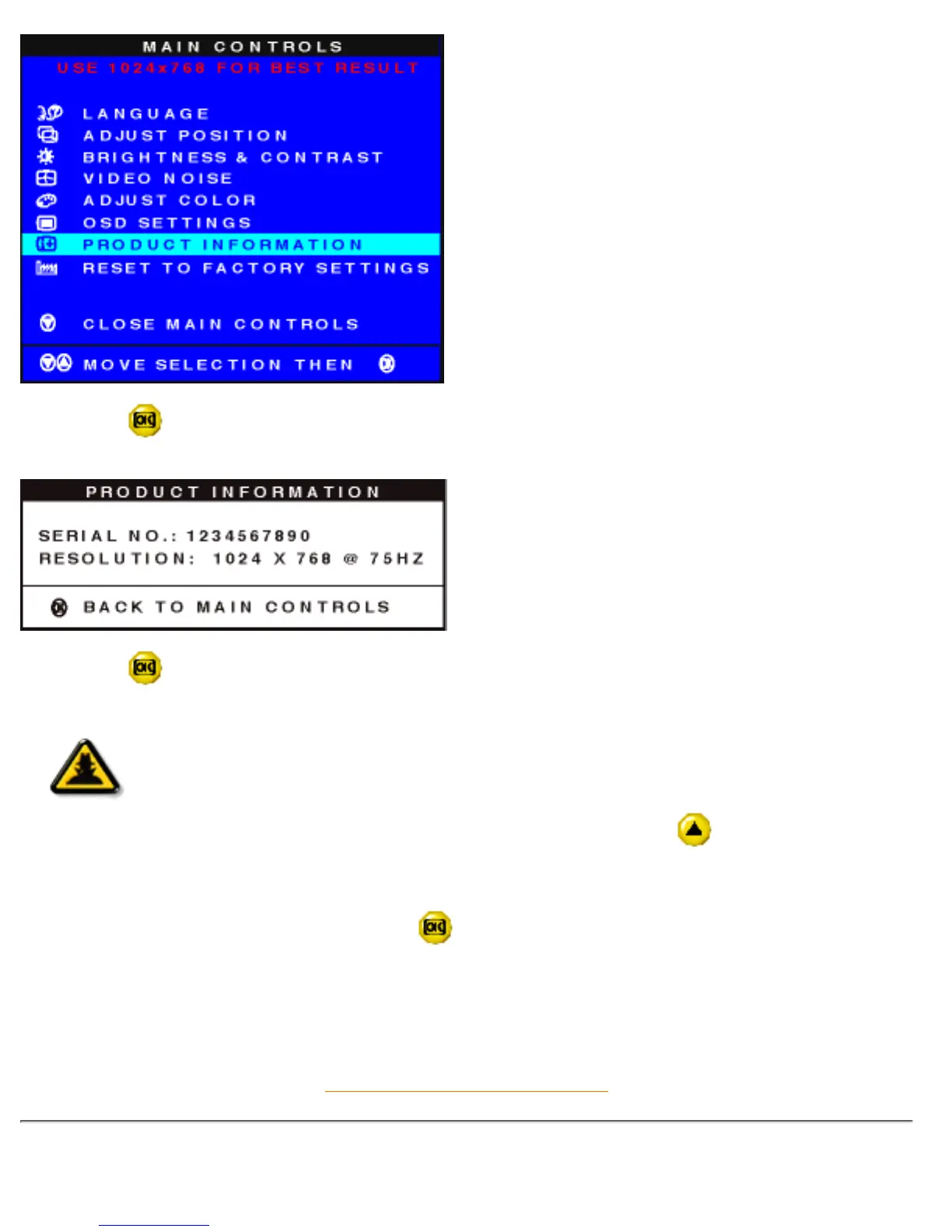monitor's SERIAL NUMBER and RESOLUTION of the monitor.