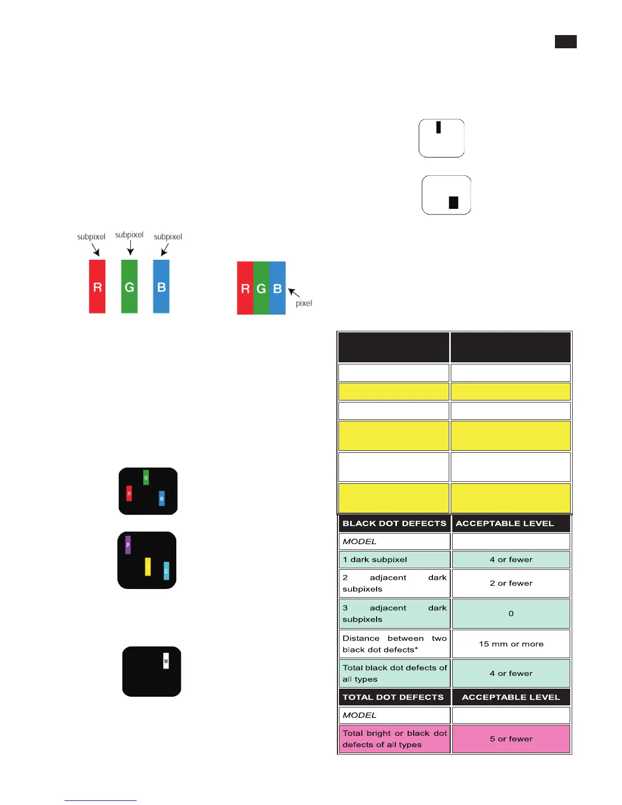 must have pixel or subpixel defects exceeding the tolerances listed in