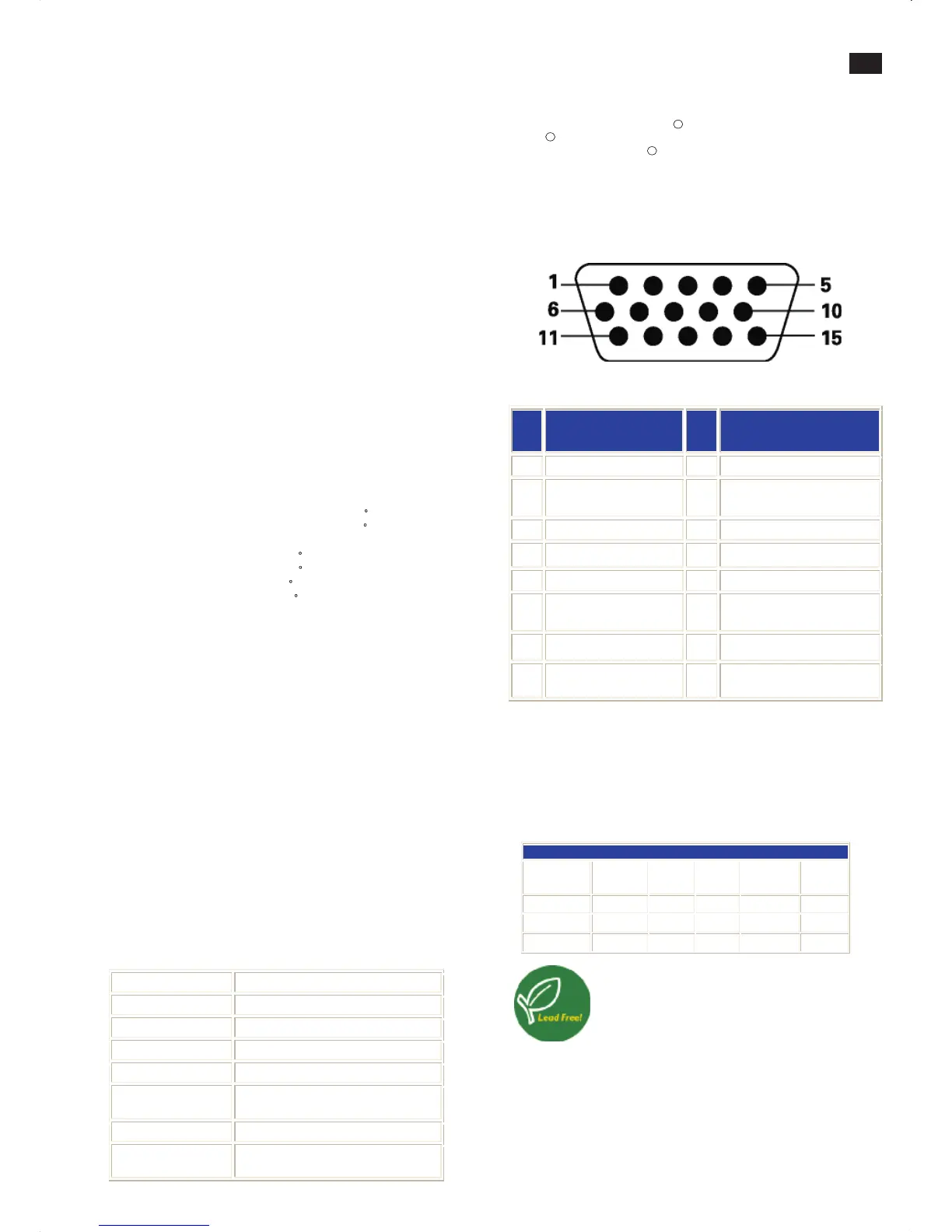 5 Hot Plug Detect 13 H. Sync / H+V