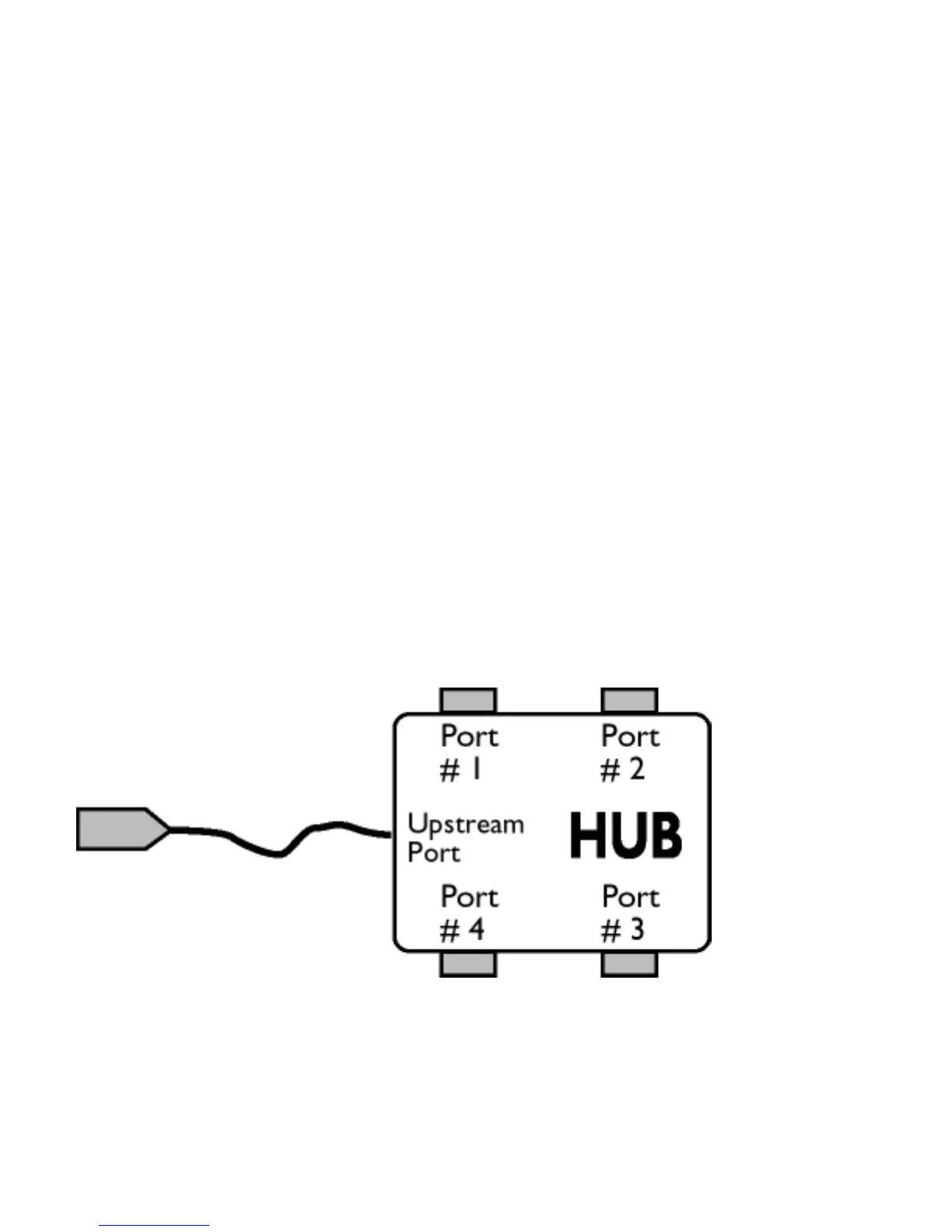 The upstream port of a hub connects the hub towards the host. Each of the other downstream ports of a
