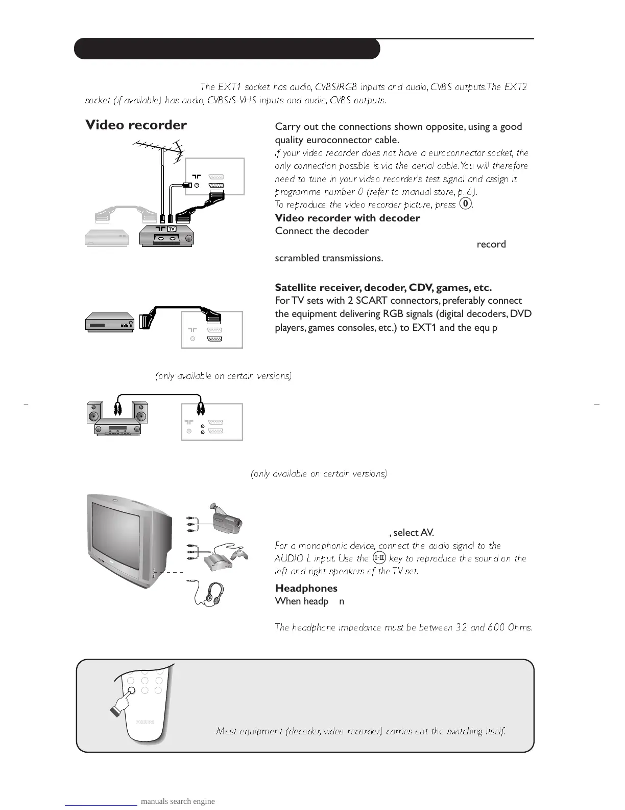 Depending on the versions, the TV set will be equipped with 1 or 2 SCART connectors EXT1 and