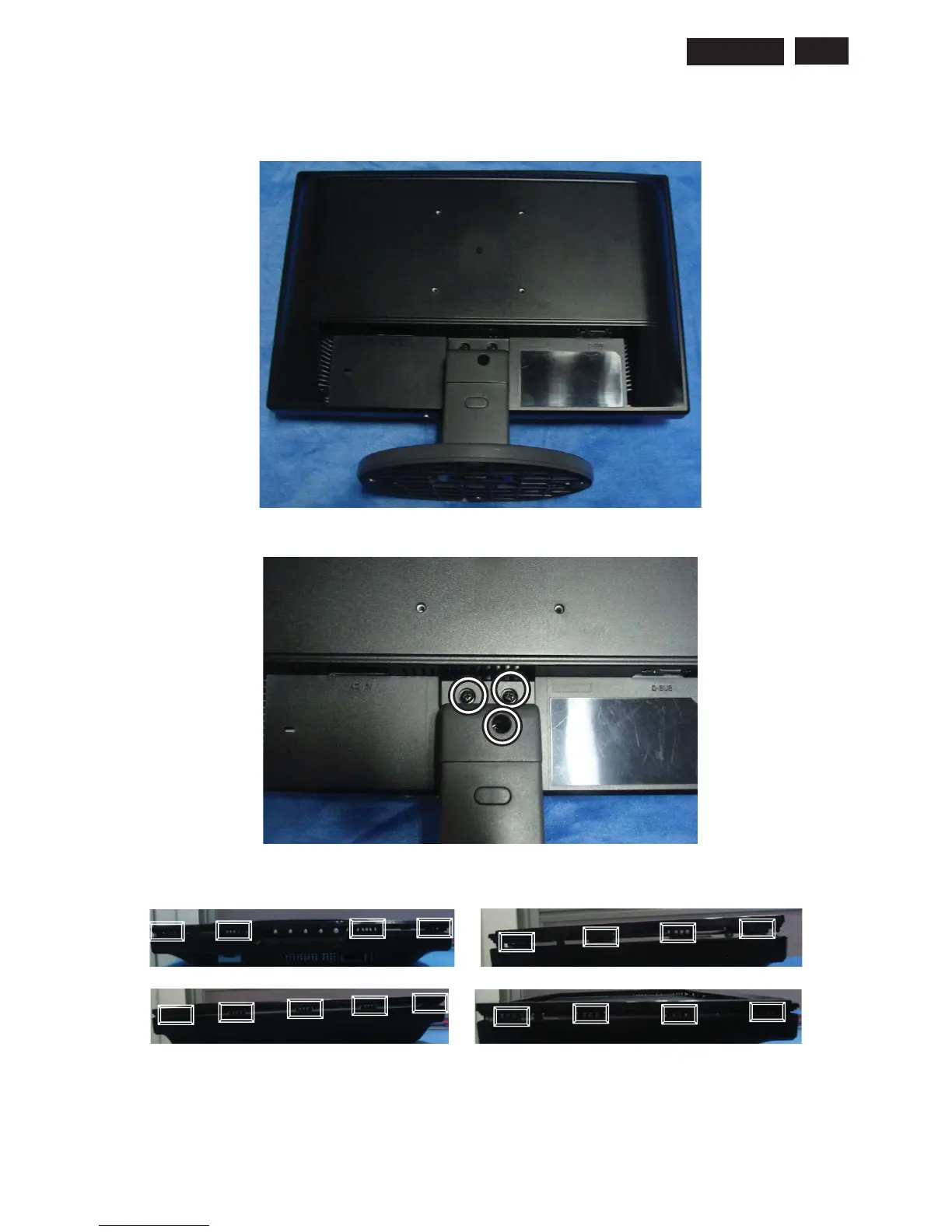 1. Place the monitor face down on a smooth surface .Be careful to avoid scratch and injury during the process of