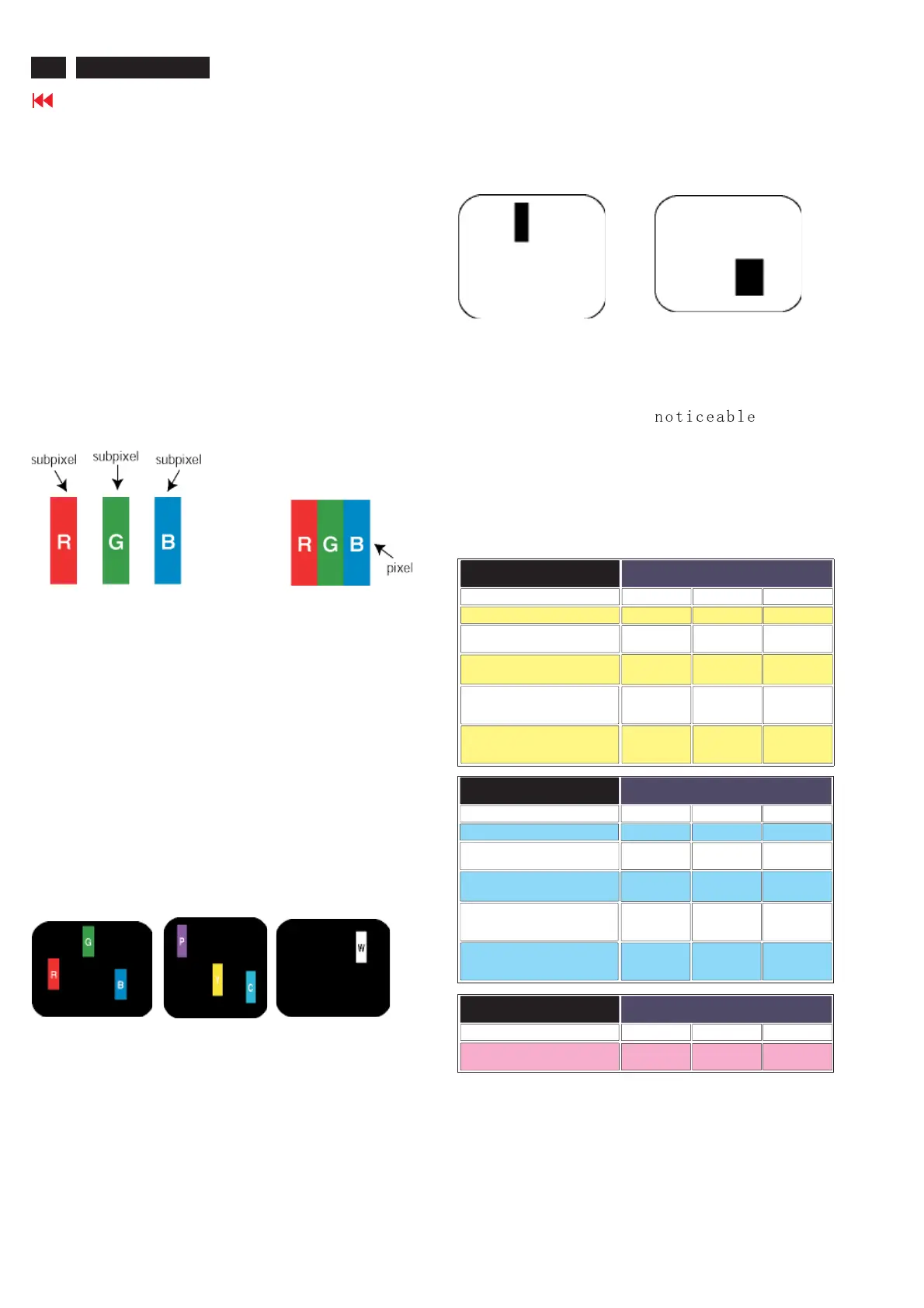 Pixel and sub pixel defects appear on the screen in different