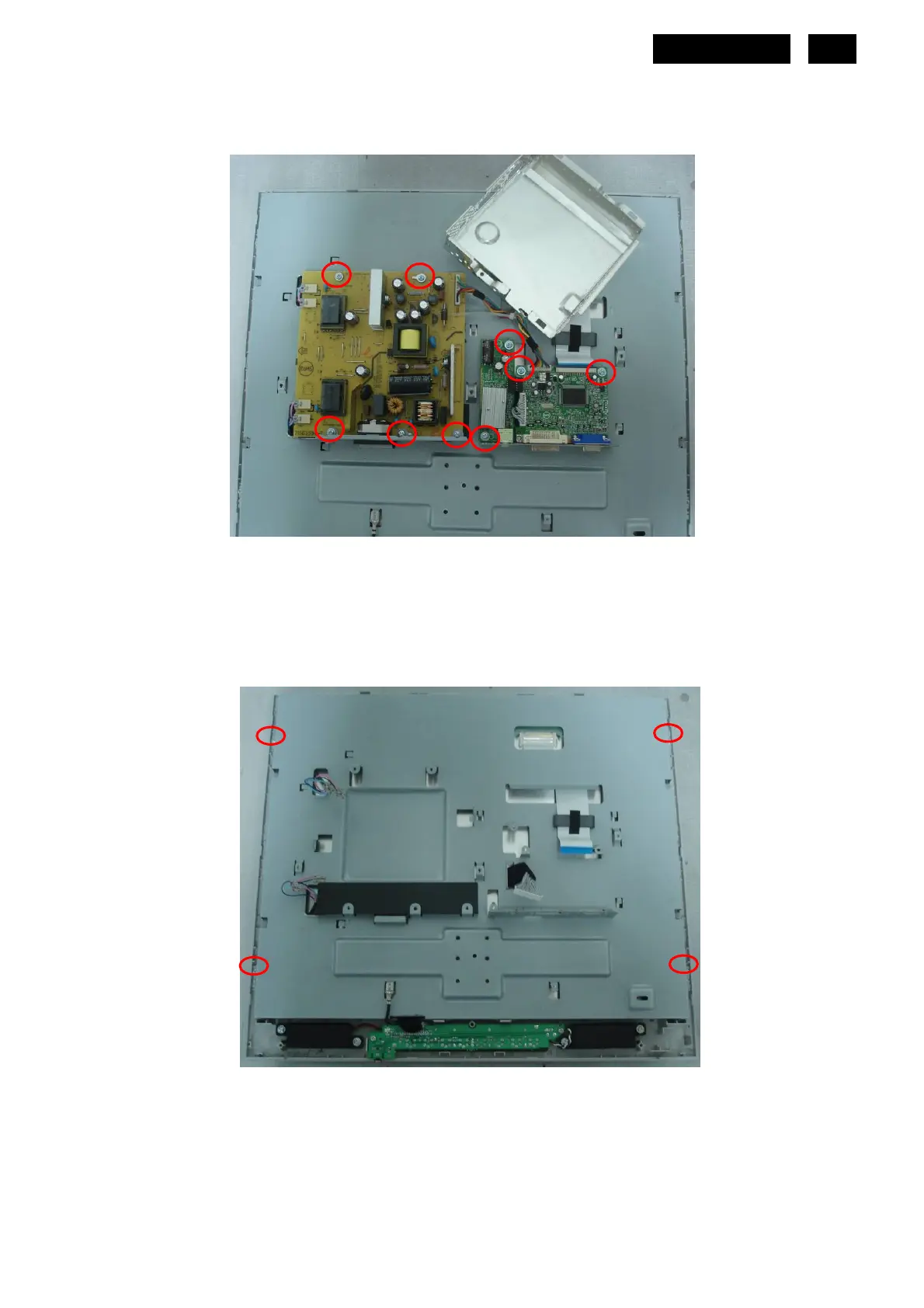 Remove the 9 screws as Fig.7 to remove the main board audio board and the power board.