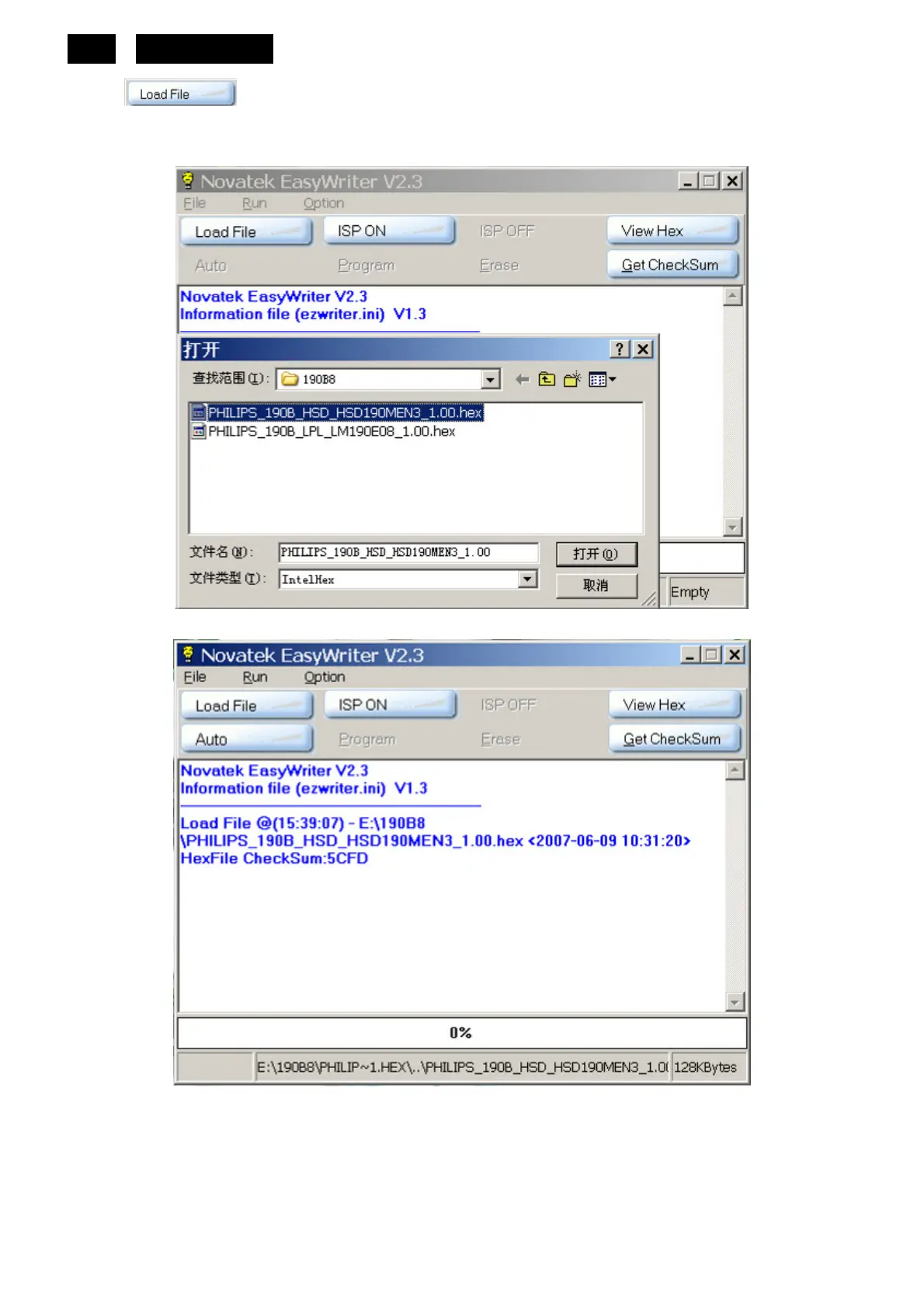 b. Click icon, search the program” PHILIPS_190B_HSD_HSD190MEN3_1.00.hex”, and click