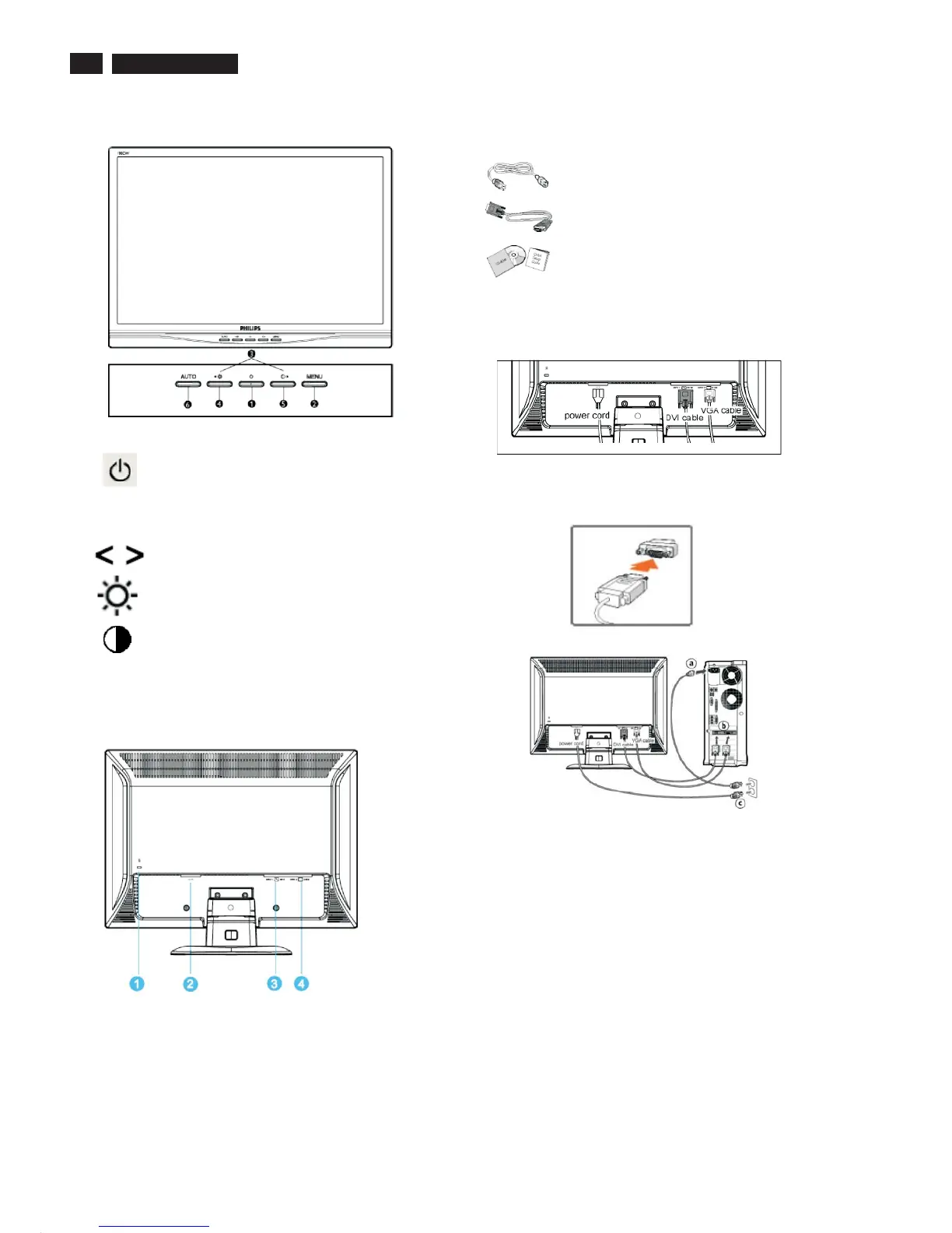 1) Connect the power cord to the back of the monitor firmly.
