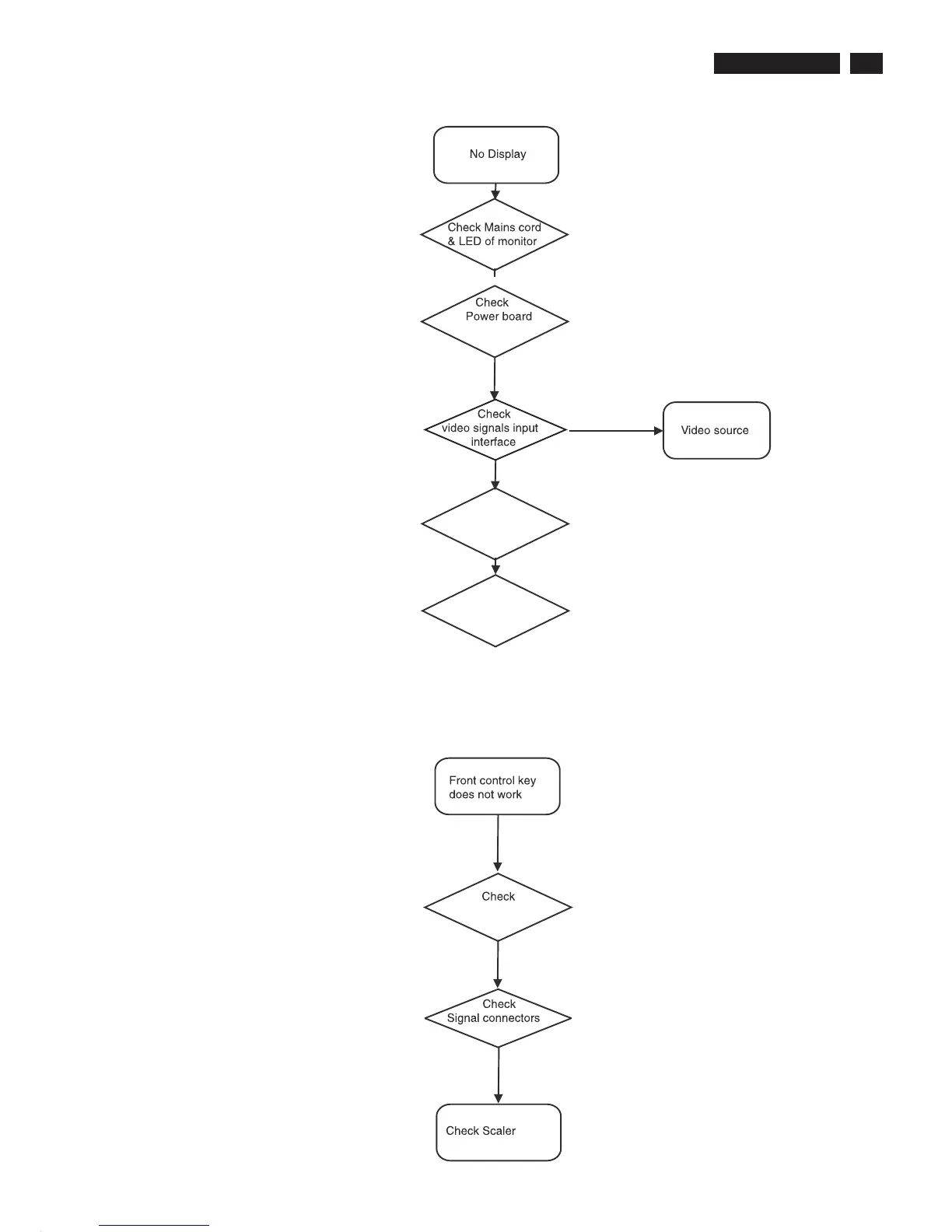 Philips 190CW7CS/00 - Flow Chart for No Display and Control Issues