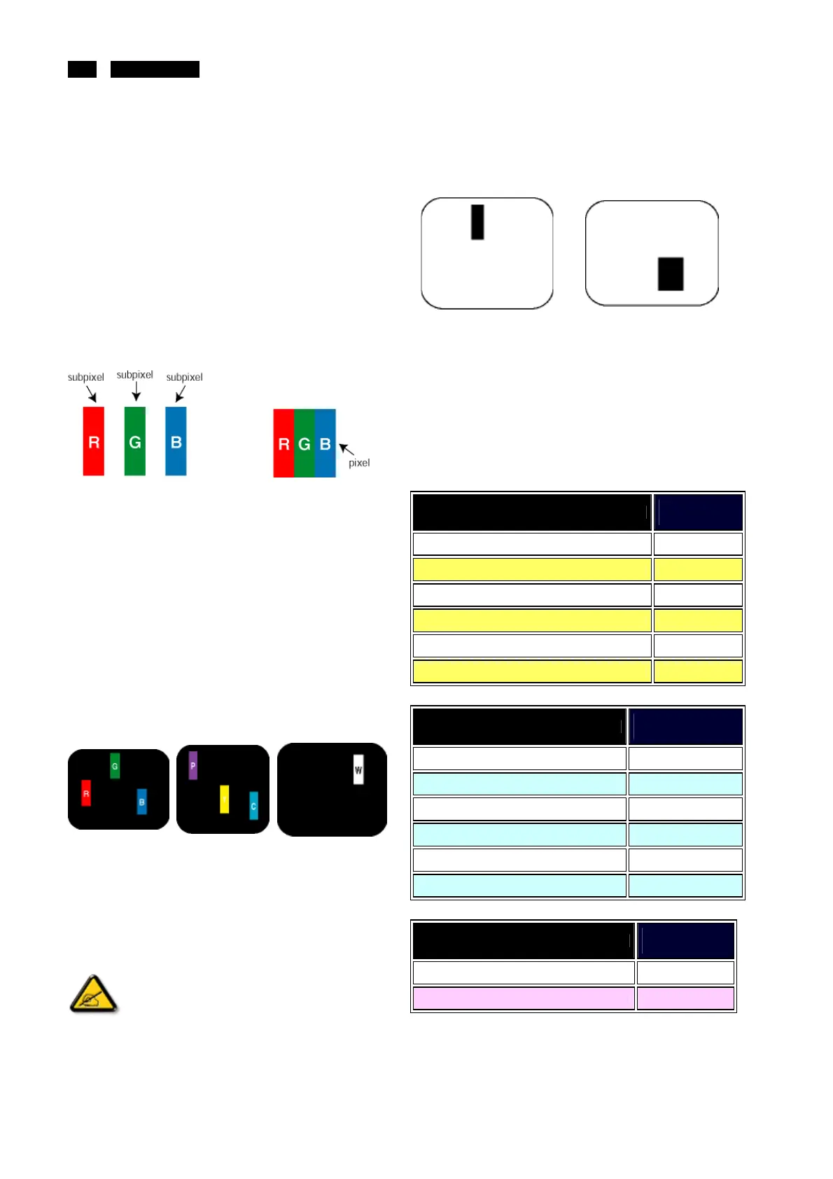 * 1 or 2 adjacent sub pixel defects = 1 dot defect