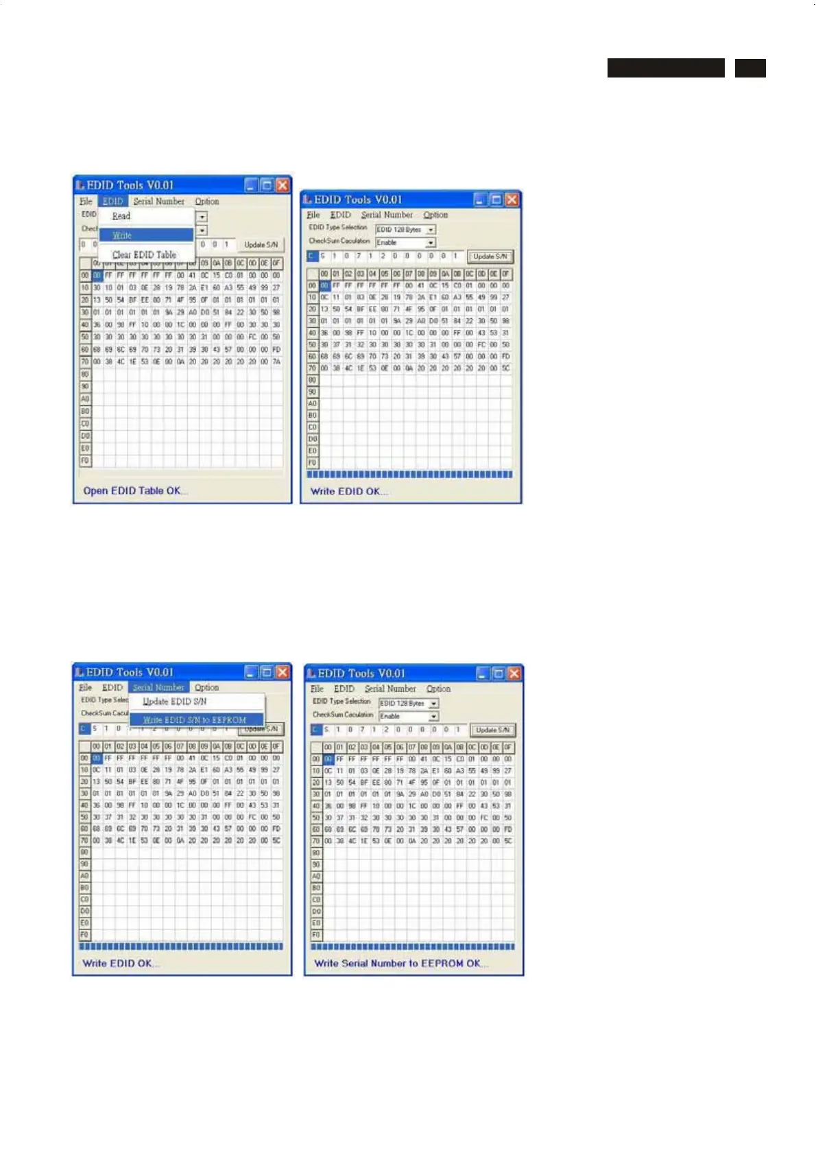 Note: If not enter Factory Mode, this Wrote EDID S/N will not work.