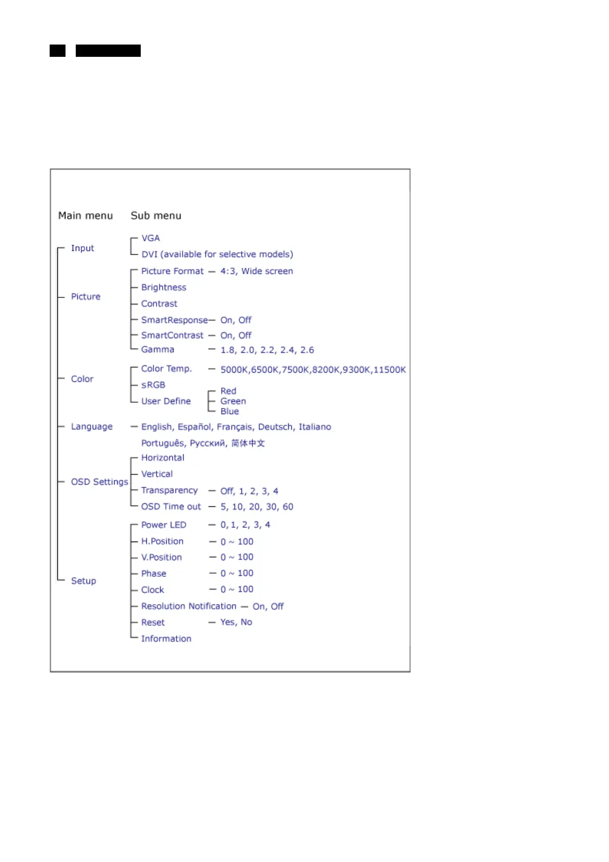 Below is an overall view of the structure of the On-Screen Display. You can use this as a