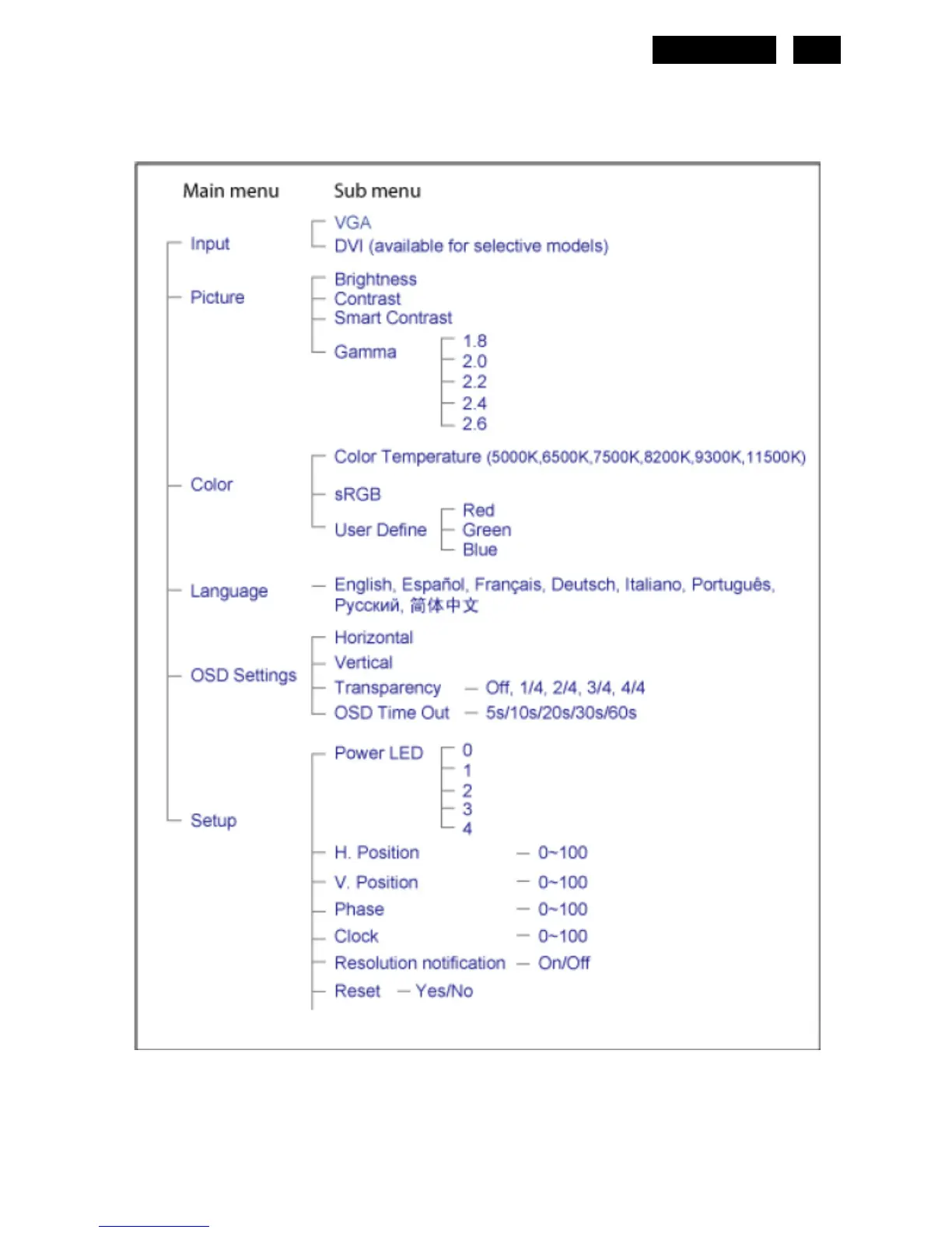 Below is an overall view of the structure of the On-Screen Display. You can use this as a reference when you want