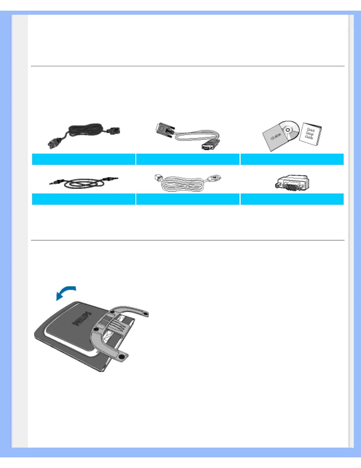 Philips 190X6 - Connecting to Your PC; Included Accessories; Connecting the Monitor to PC
