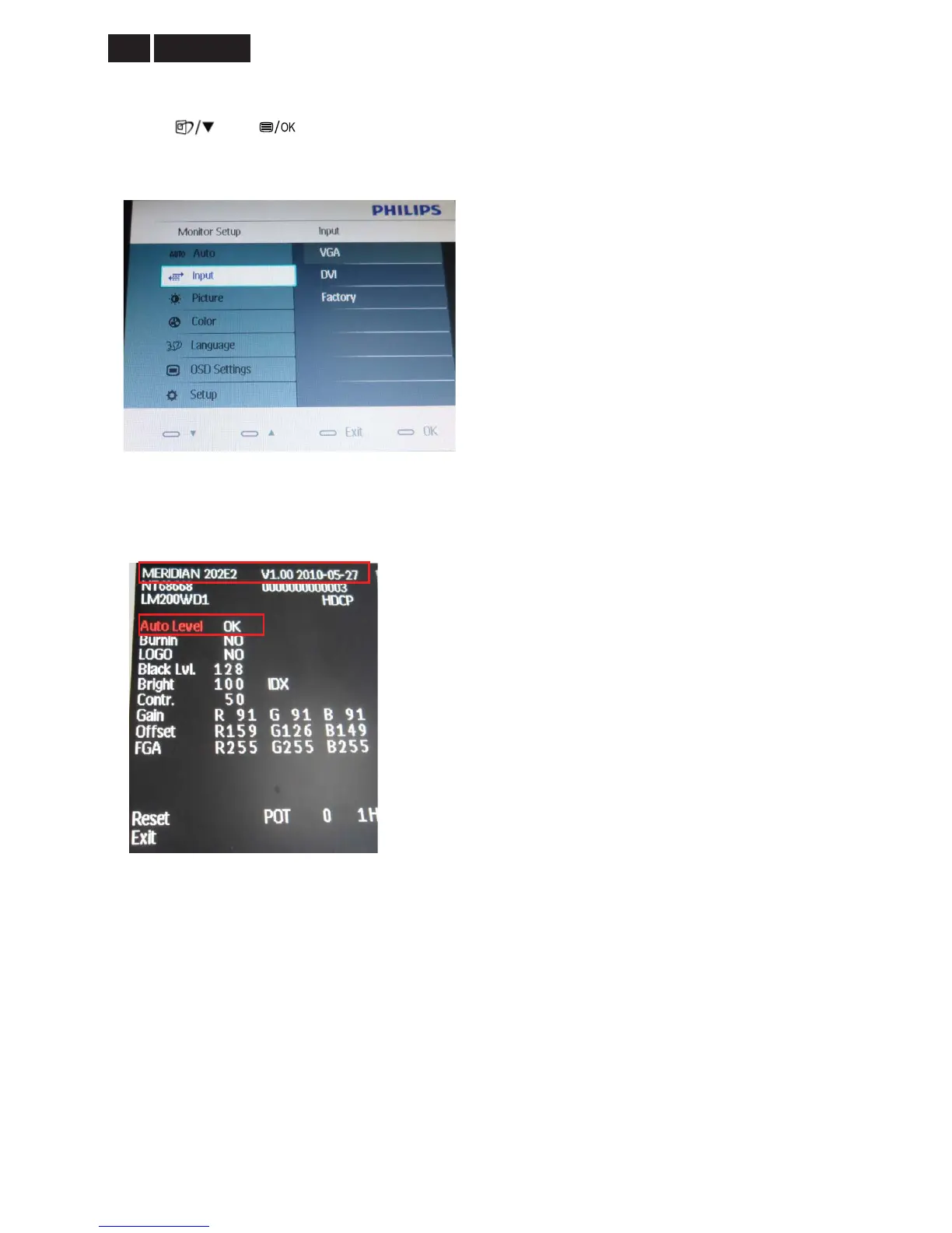 and buttons at the same time, power on the monitor, and then press the menu again; the