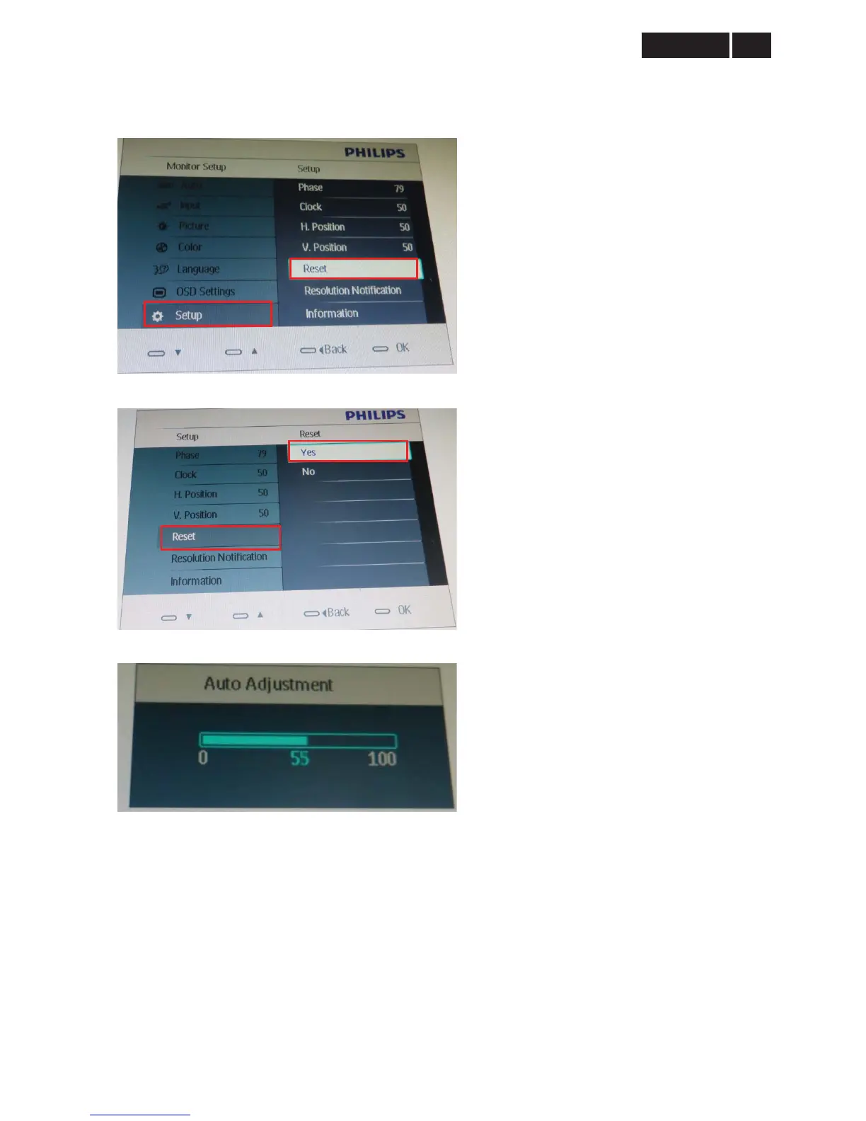 5. Press “MENU” to enter into user mode to restore the factory setting. Otherwise, monitor will not be able to save